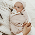 Swaddling creates a cozy and soothing, womb-like atmosphere to help infants sleep more sound by reducing the startle reflex. We make our muslin swaddle blankets from a single layer of material, composed of 100% cotton, which helps reduce the risk of overheating and promotes a longer night’s sleep. Swaddling may soothe a crying baby and lead to a healthier night’s sleep, making this set an essential item for your Baby Registry.