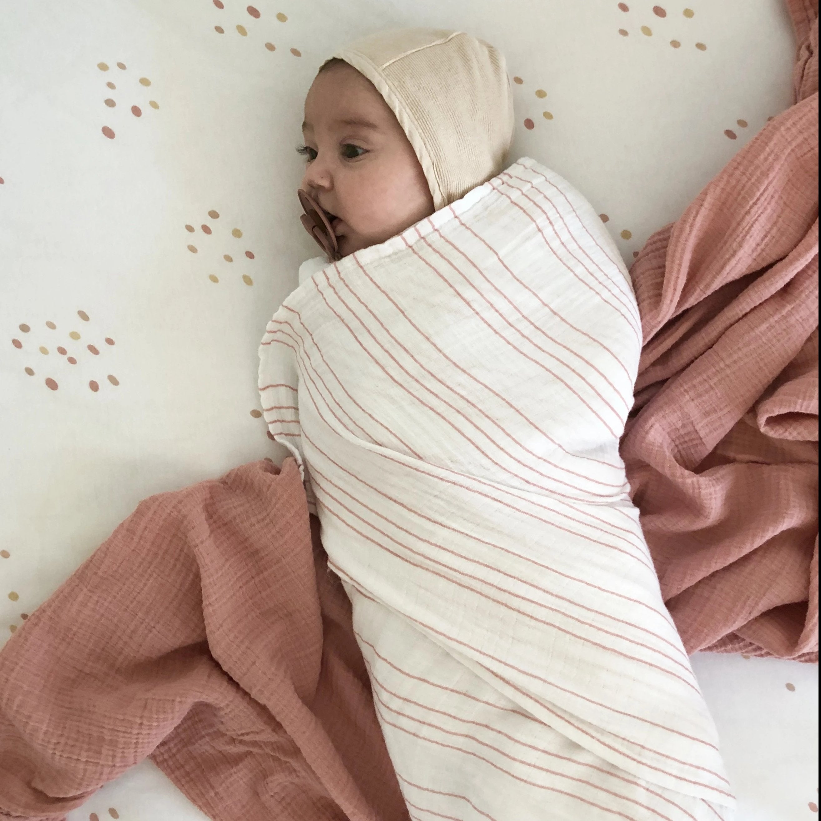 - Our versatile 47” x 47” (120 cm x 120 cm) cotton muslin swaddles can also function as your little one’s playtime blanket, stroller, or car seat cover, changing pad cover, burp cloth, as well as mommy’s nursing cover.