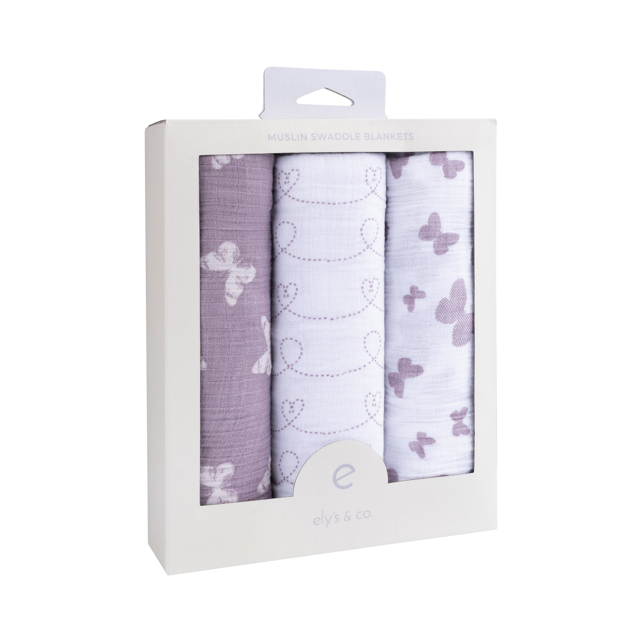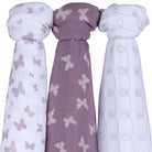 - Includes: 3 pre-washed 47" x 47" (120cm x 120cm) 100% cotton muslin swaddles with 3 Unique Lavender Butterfly Designs