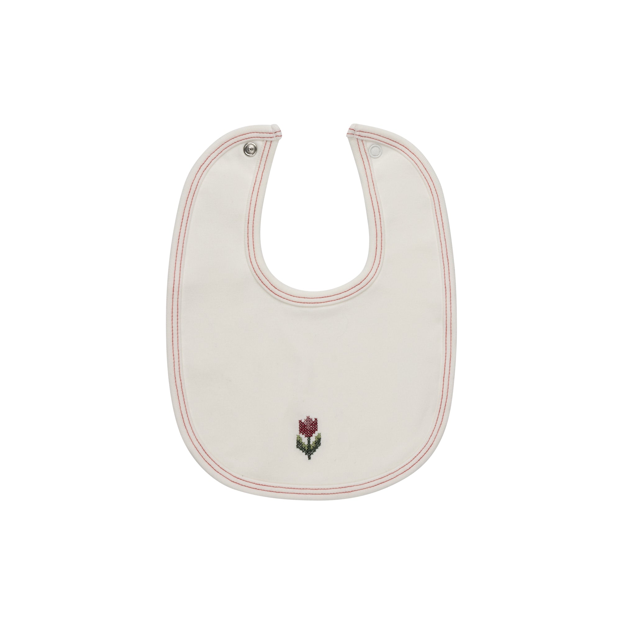 Baby Girl Bib – Ivory Pink – Cross Stitch Tulip