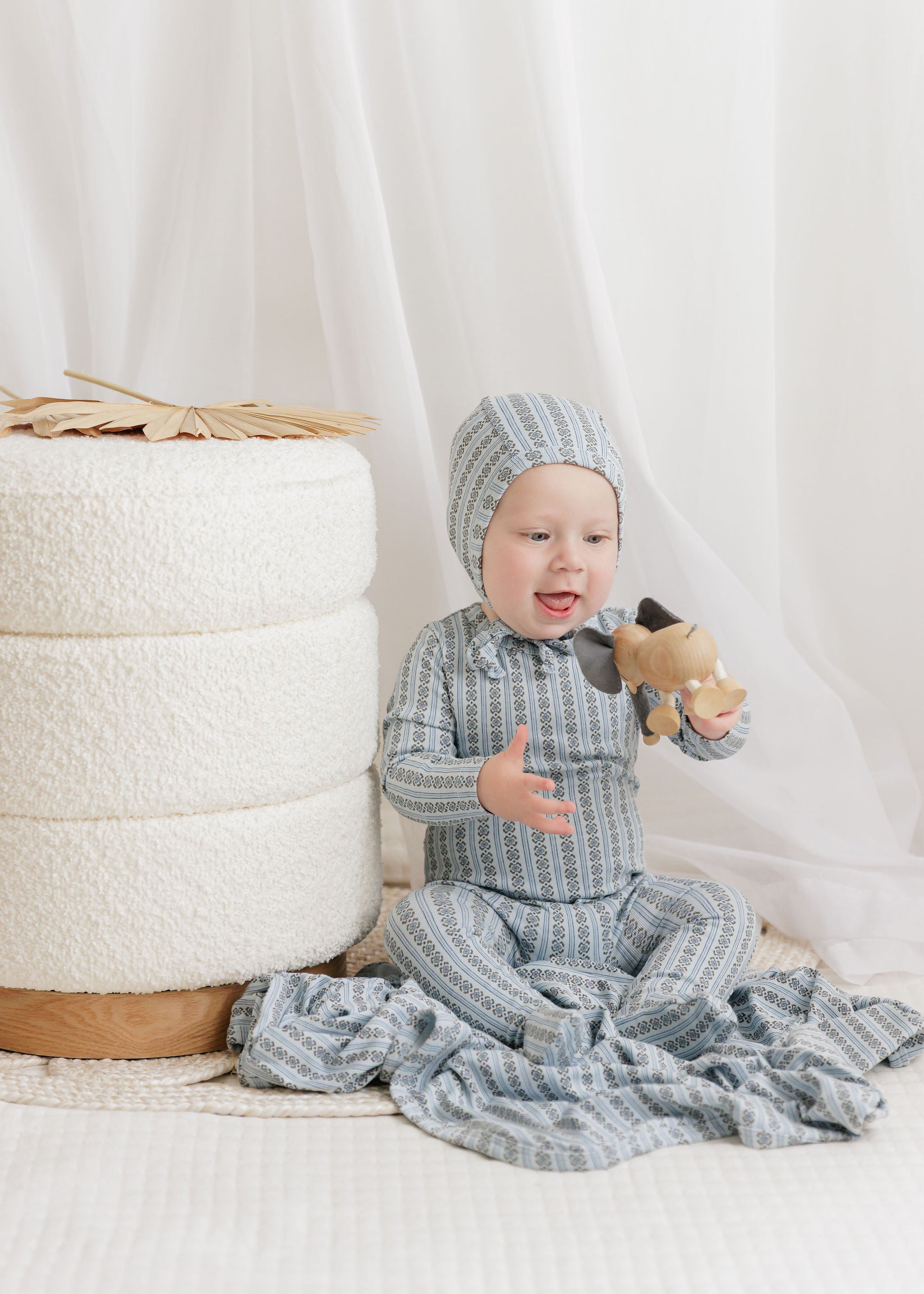 Baby Boy Paci Clip – Ivory/Blue – Keepsake Collection