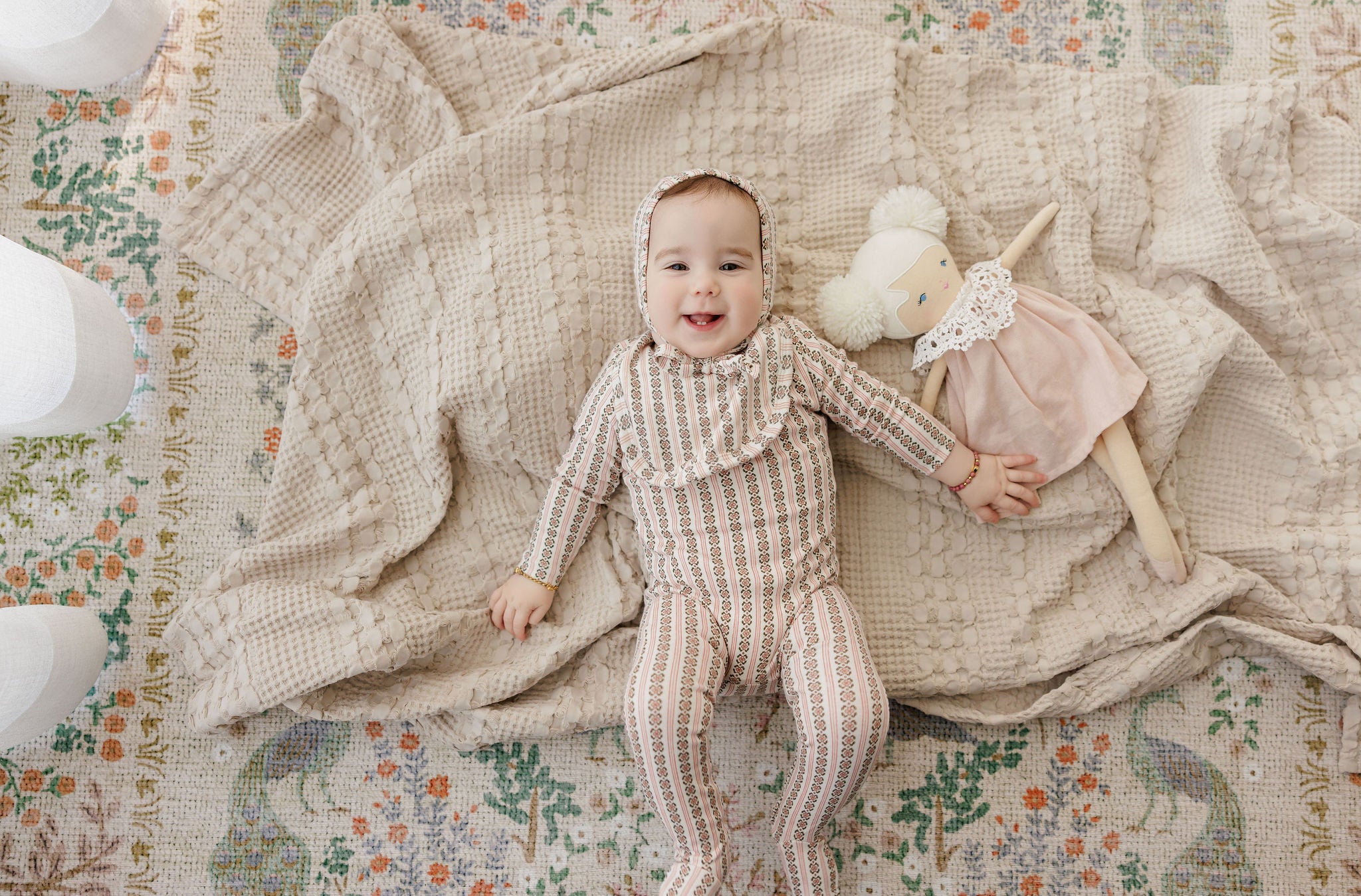 Baby Girl Bib – Ivory Pink – Linear Leaf