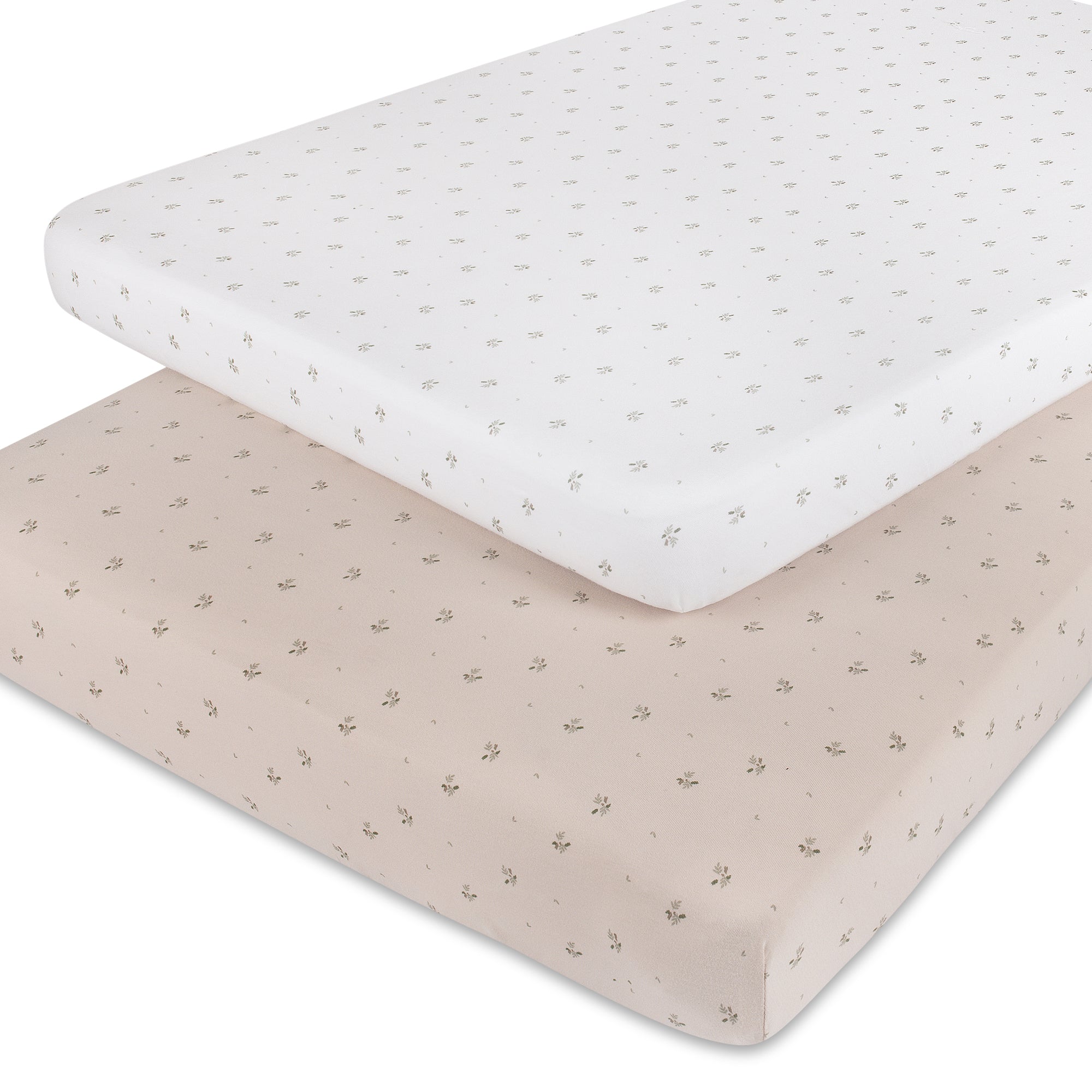 Wrap your little one’s portable crib in Ely’s & Co. Floral Print Sheets, crafted from 100 % high-quality combed cotton for lightweight breathability and soothing softness all night long. The flexible-fit design tucks securely around Pack ’n Play® and portable crib mattresses, while compact, gift-ready packaging makes this two-pack the perfect baby-shower surprise.
