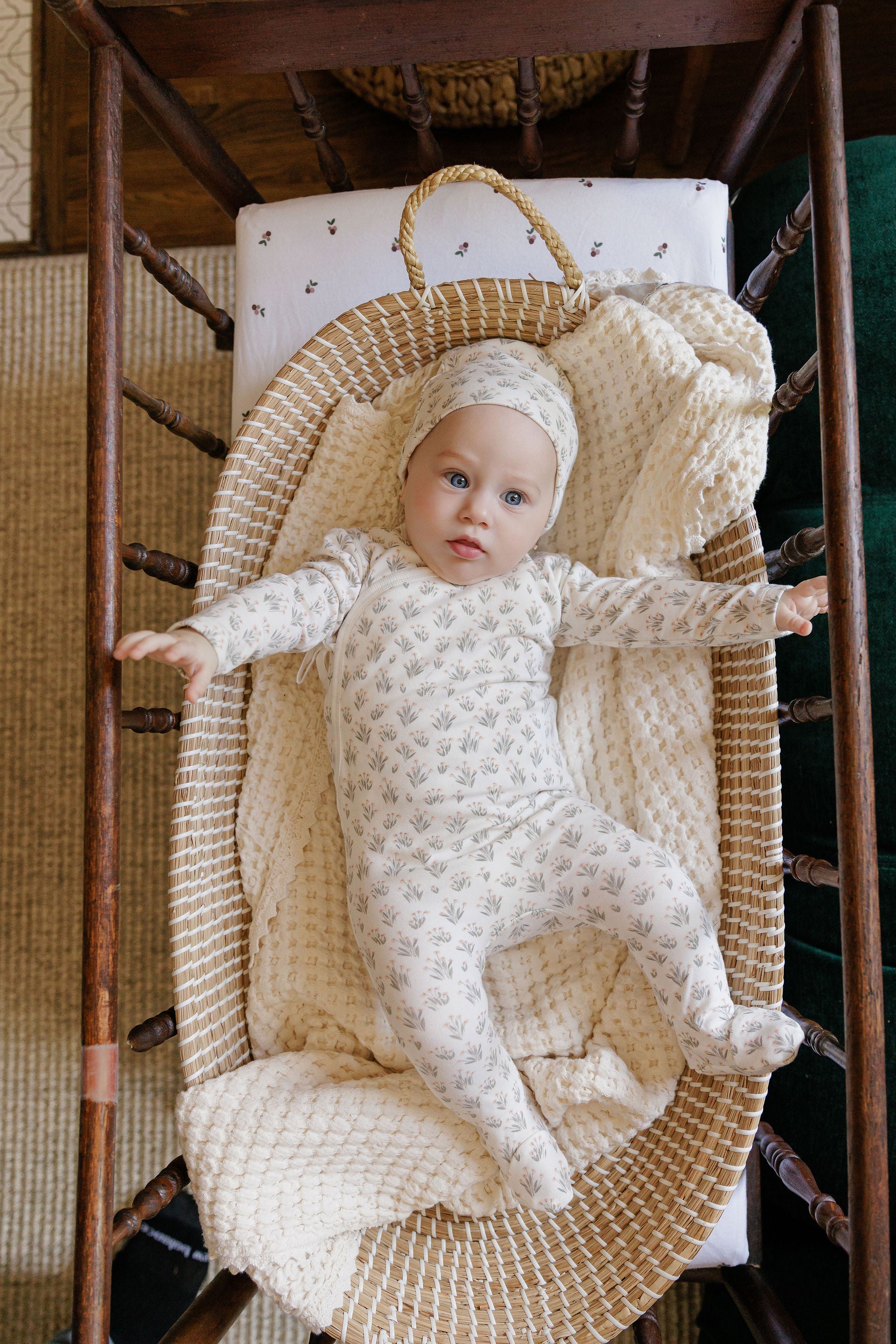 Wrap your little one in the gentle comfort of the French Terry Blooms Collection in Ivory | Mauve. Crafted from soft, breathable fabric, this piece ensures cozy warmth while allowing easy movement for active babies. The delicate floral pattern adds a charming touch to everyday wear, making it perfect for both playtime and rest. Give your baby the blend of comfort and style they deserve with this delightful collection.