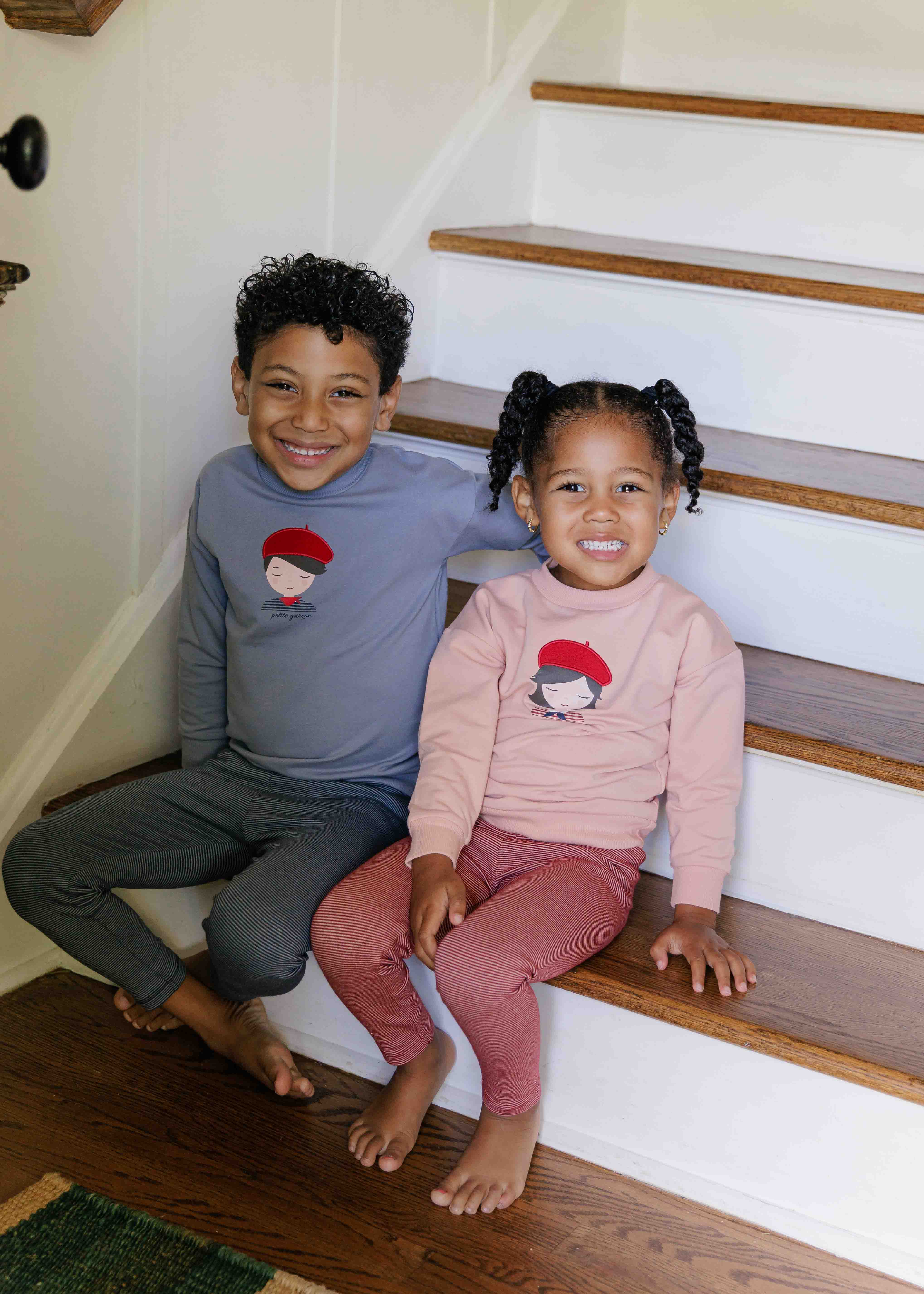 Indulge in the luxurious comfort and effortlessly chic style of our French Terry French Kids Collection - Lounge Set. Crafted from organic French terry, this coordinating set offers unmatched softness and sophistication.