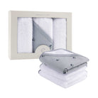 Ely’s & Co. Cotton Terry Washcloth Set includes 3 (three) 10” x 10” washcloths. Bundled in a chic, compact, gift-ready box, this essential bath time set makes for the perfect baby shower gift!