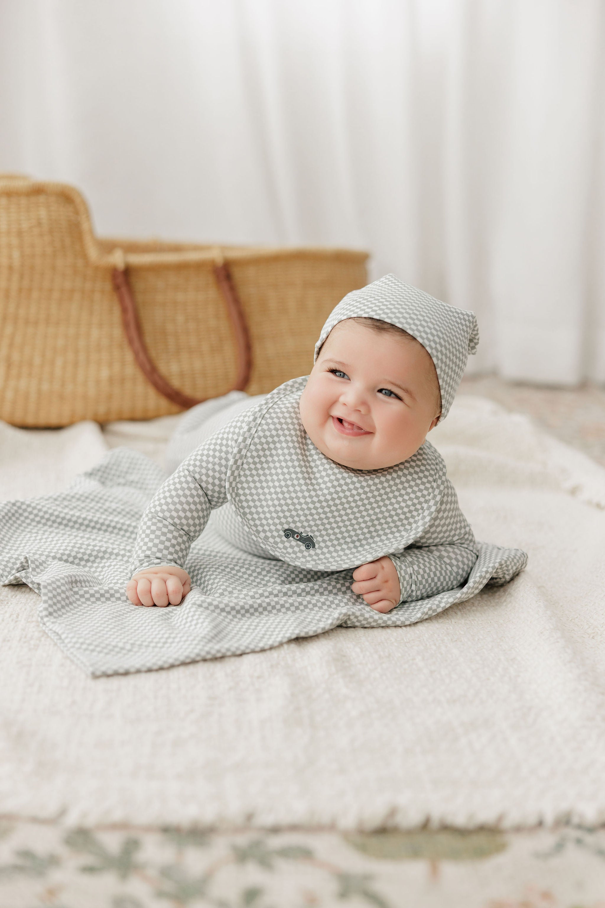Designed to pair with the matching footie from this collection or perfect on its own. The checked pattern and race car detail give it a sweet, sporty feel while keeping baby comfortable.