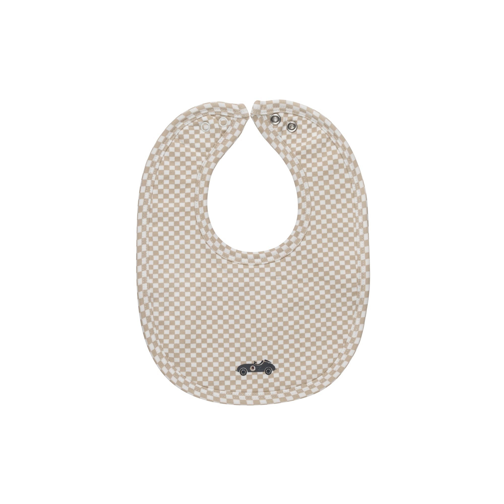 Baby Boy Bib – Tan – Checked Race Car
