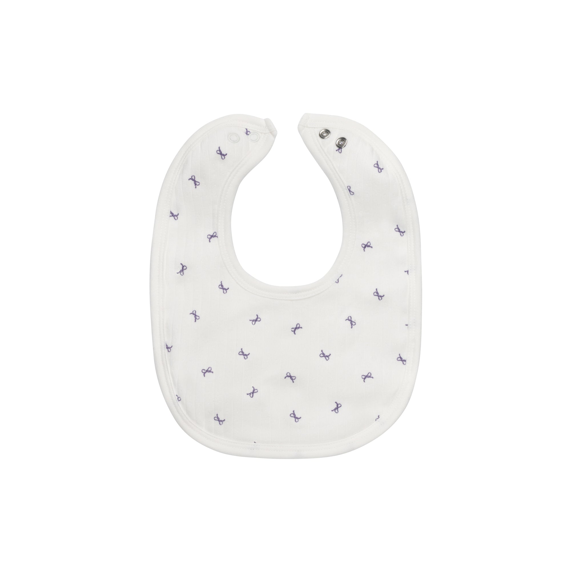 Baby Girl Bib – Ivory Lilac – Bow Pattern