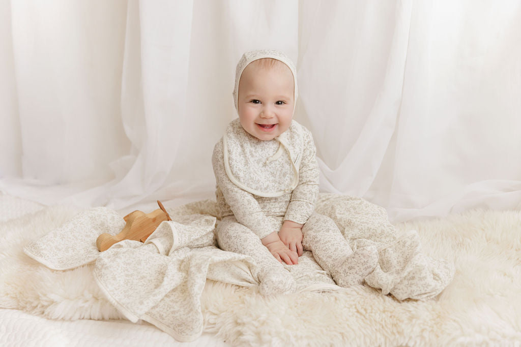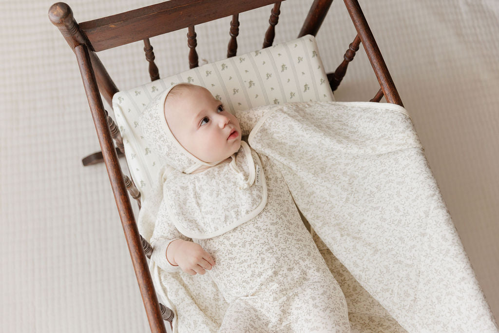 Soft and cozy, the Modal French Terry Vine Collection Bib offers gentle protection for your baby’s delicate skin. Made from breathable modal fabric, it keeps your little one comfortable while catching spills and dribbles with ease. Its stylish vine pattern makes mealtime or playtime both practical and fashionable. Ideal for everyday use, this bib combines function and comfort effortlessly.
