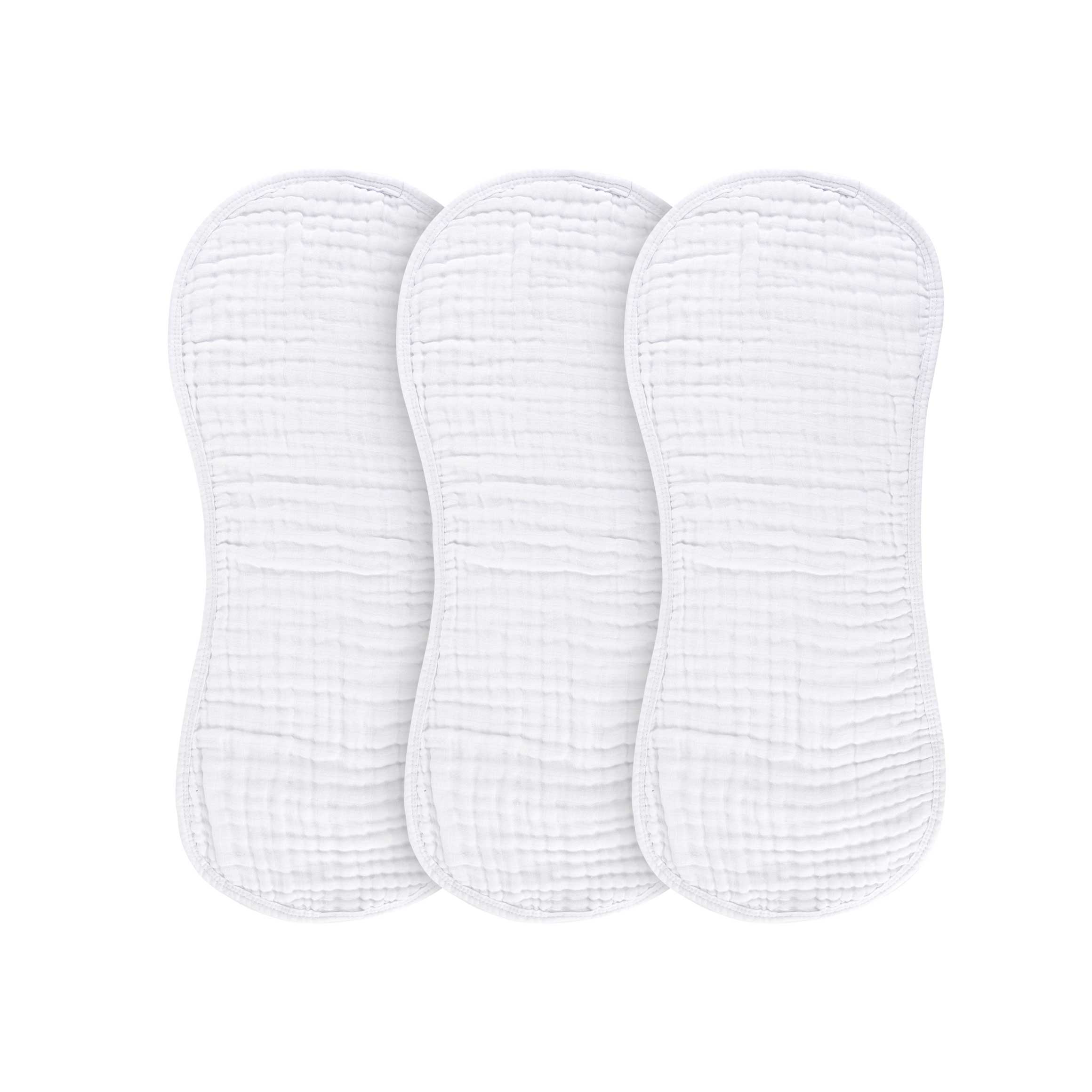 - Our essential 3-pack features 3 Solid white classic burp cloths. Offering a double-sided clean white design that can match or blend with all baby nurseries and apparel, you cannot go wrong with this giftable bundle for the baby in your life.