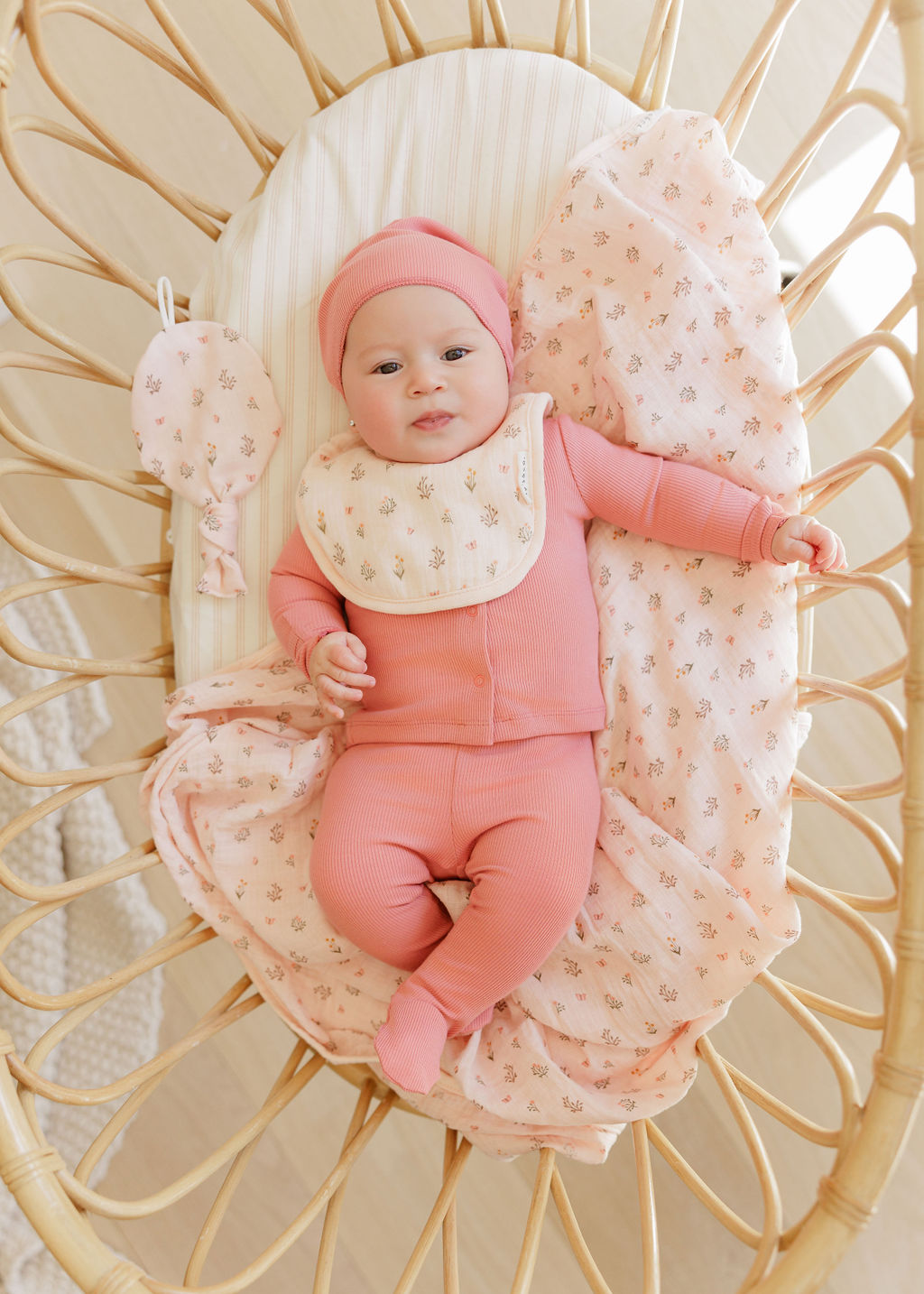 3 Pack Muslin Terry Bibs - Pink Gingko