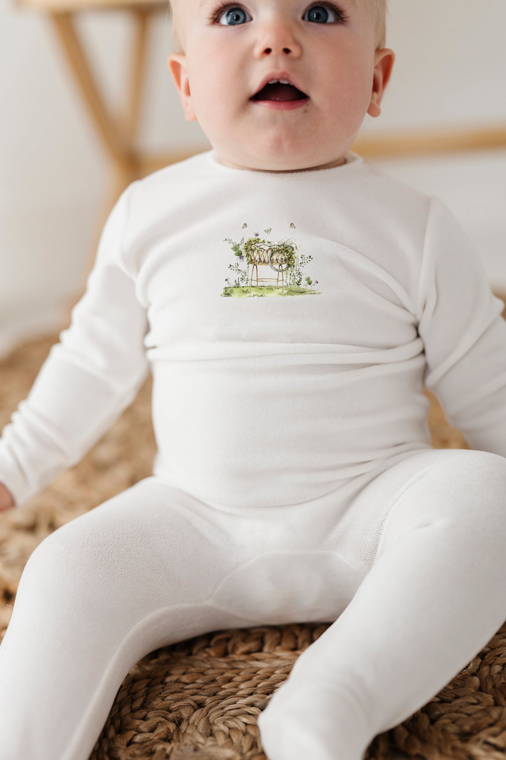 Velour Embroidered Flowers Collection - Footie + Bonnet