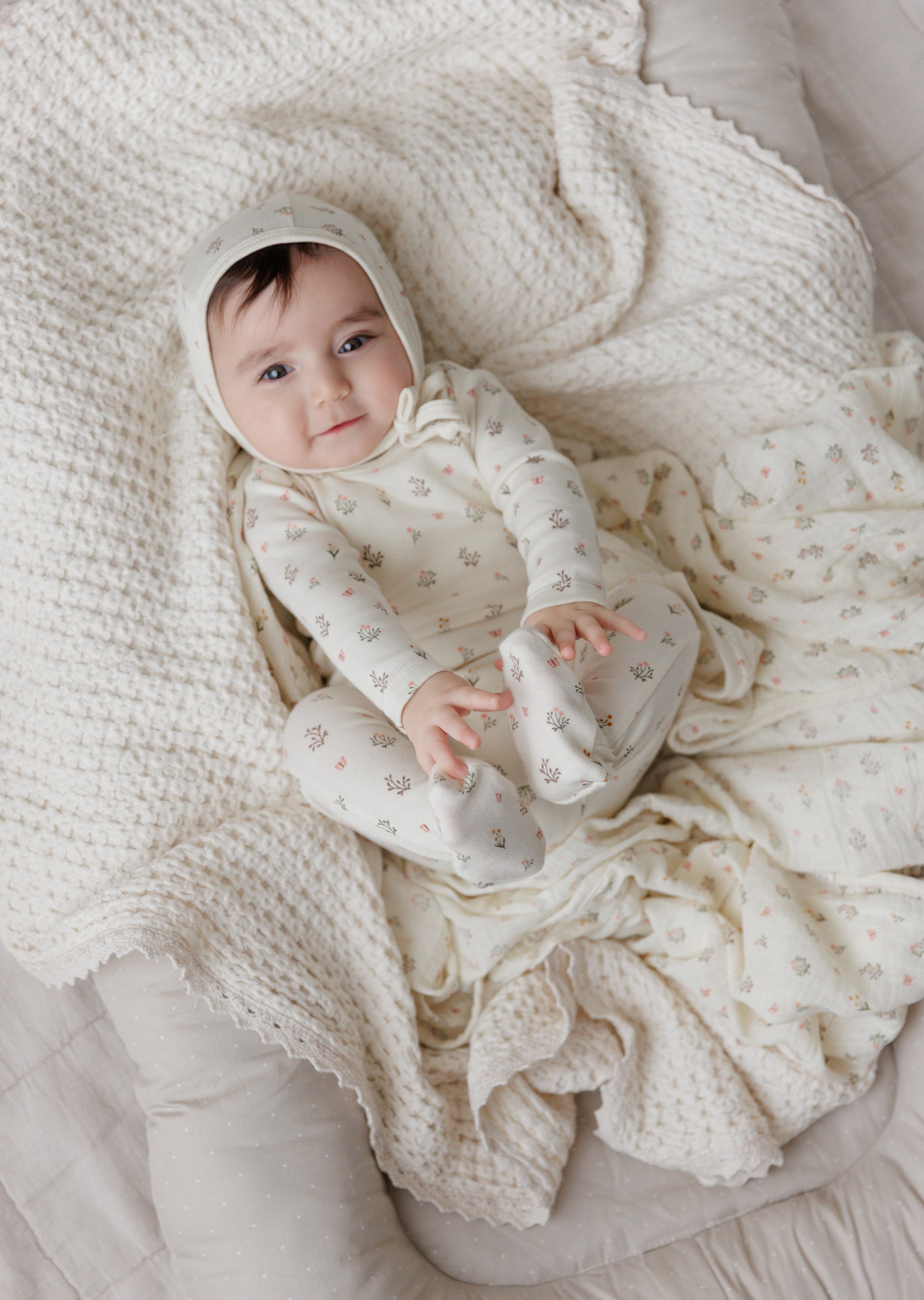 Garden Floral Print Collection - Footie + Bonnet