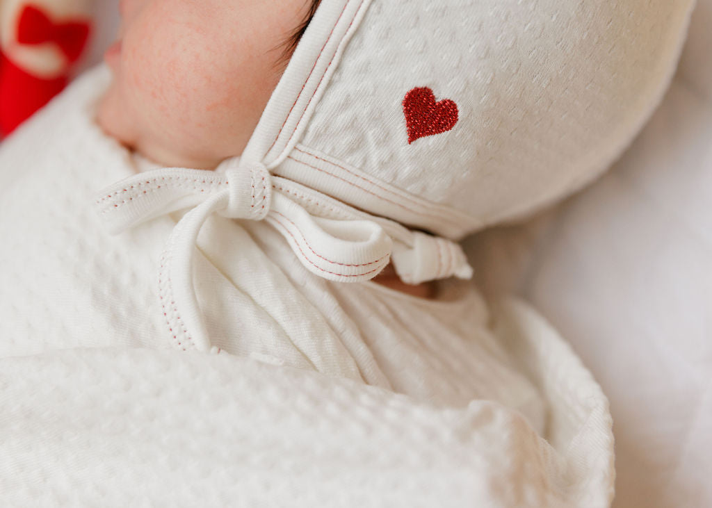 Cotton - Embroidered Heart and Star Collection - Bonnet