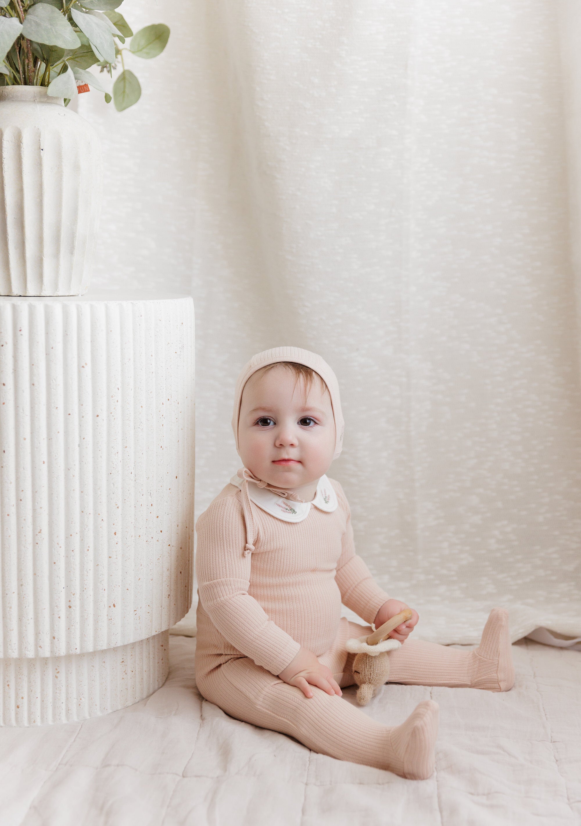 Organic Cotton Embroidered Collar Collection - Footie + Bonnet