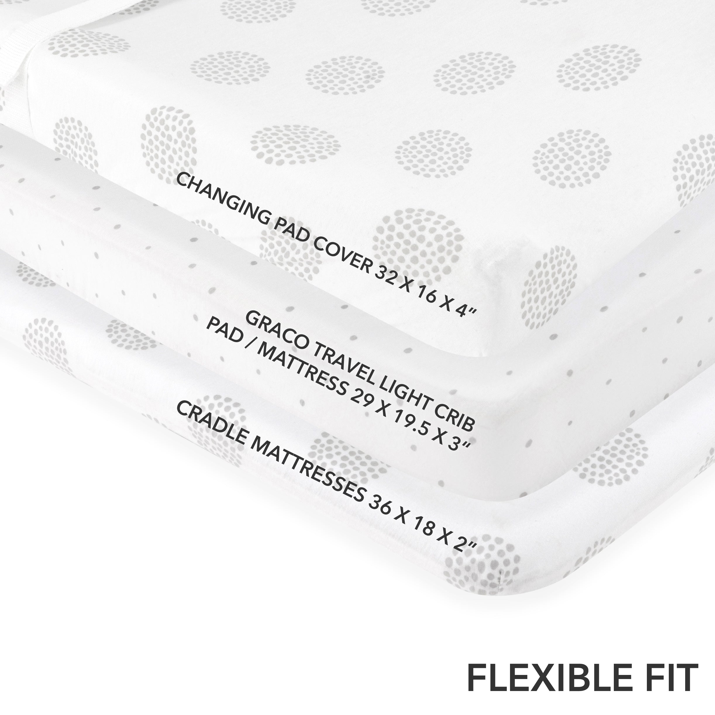- Flexible Fit: Fits Changing Pads and Cradle Mattress 36" X 18" as well as Graco Travel Lite Crib Mattresses Dimensions: 32" x 16" x 5" inches
