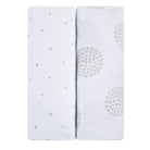 - This convenient two-pack features a modern and playful grey polka dot design paired with a grey dotted circle set on white, combed jersey knit cotton. You can be rest assured that your baby’s sleep surface will always be covered with a clean, trendy, and soft cotton sheet with this changing pad covers│cradle sheet set!