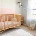 - These lovely, light, pink blush crib sheets feature a modern, minimalist white pin dot detail and our exclusive white gingko leaves design. We designed this fresh and feminine sheet set to complement baby girl’s nursery décor. Show us how you style this gorgeous nursery bedding set by tagging Ely’s & Co. on social media!