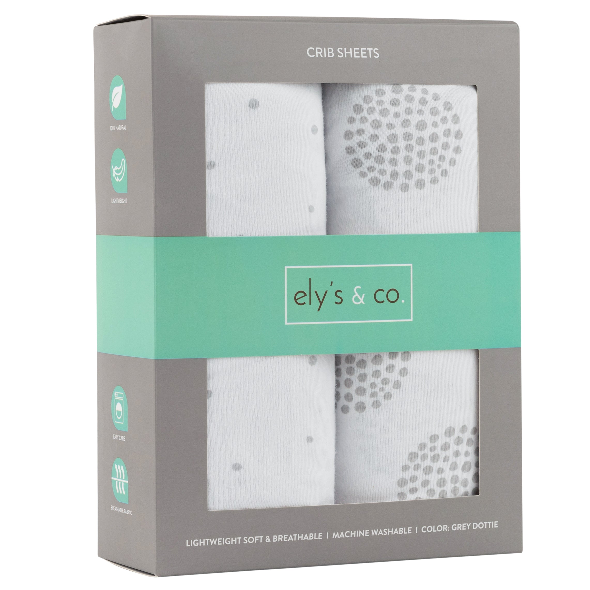 Ely’s &Co. Crib Sheet 2-Pack - 100% Superior Quality Combed Jersey Cotton for Baby Boy or Baby Girl (Grey Dottie)