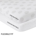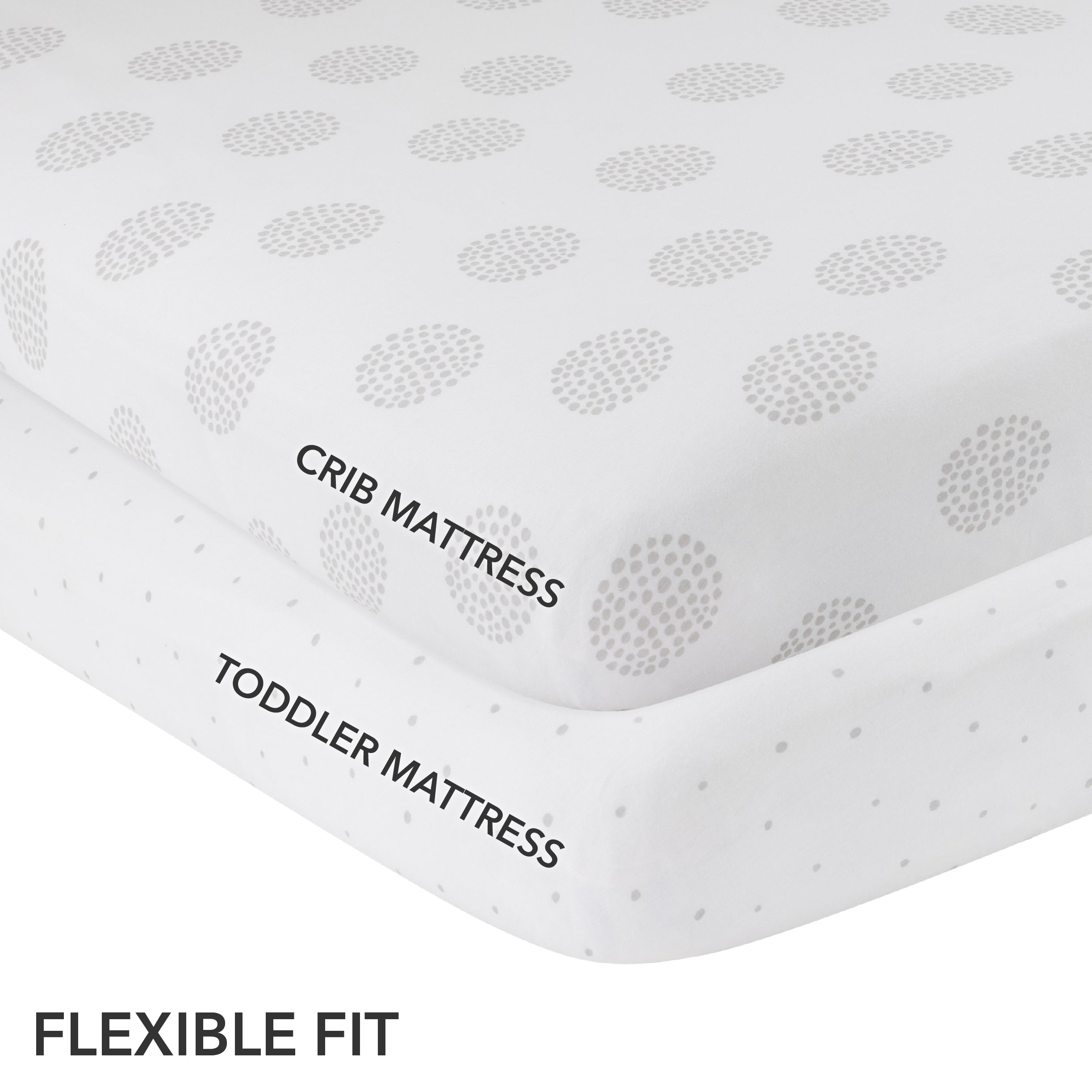 - Flexible-Fit Crib Sheet 2-Pack for Baby Boy or Baby Girl in Grey Dottie – Bundled in our charmingly cute and compact packaging, this set makes for the perfect baby shower gift!