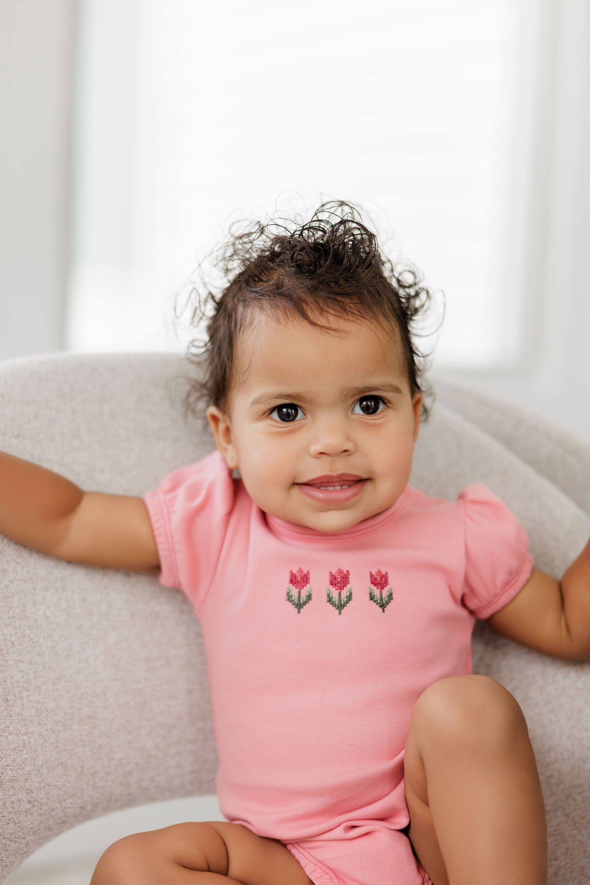 Inspired by traditional hand stitching, the Cross Stitch Tulip/Lighthouse Collection brings quiet character to baby's wardrobe. Crafted in soft stretch cotton, each piece blends everyday comfort with timeless detail.