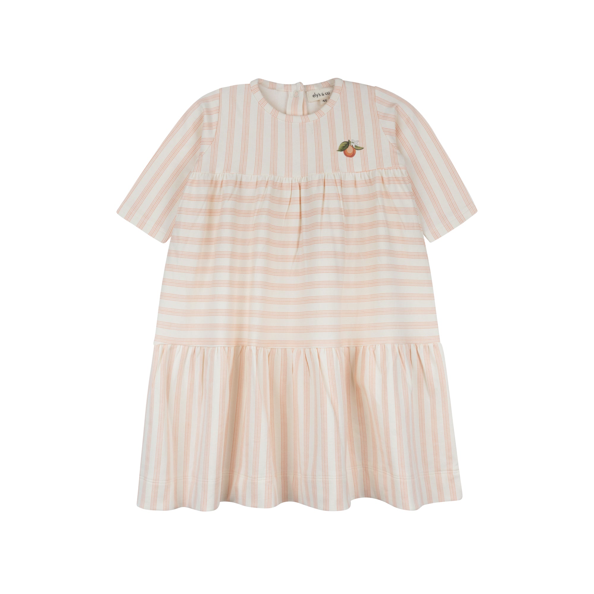 A soft striped dress featuring delicate printed fruit detail for effortless summer charm.