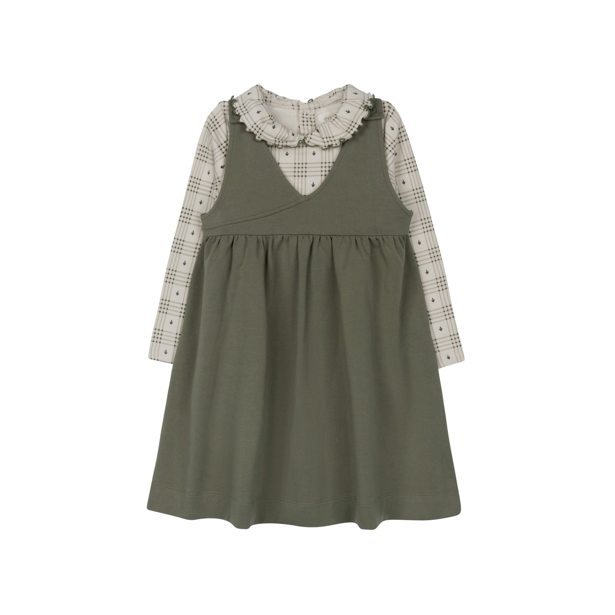 This solid color jumper from the Cotton Floral Plaid Collection offers a simple yet stylish piece for girls. Crafted from soft cotton, it ensures all-day comfort and easy wear. Pair it with the Cotton Floral Plaid Collection Ruffle Neck Tee to complete an effortlessly charming outfit that balances classic and fresh style perfectly.