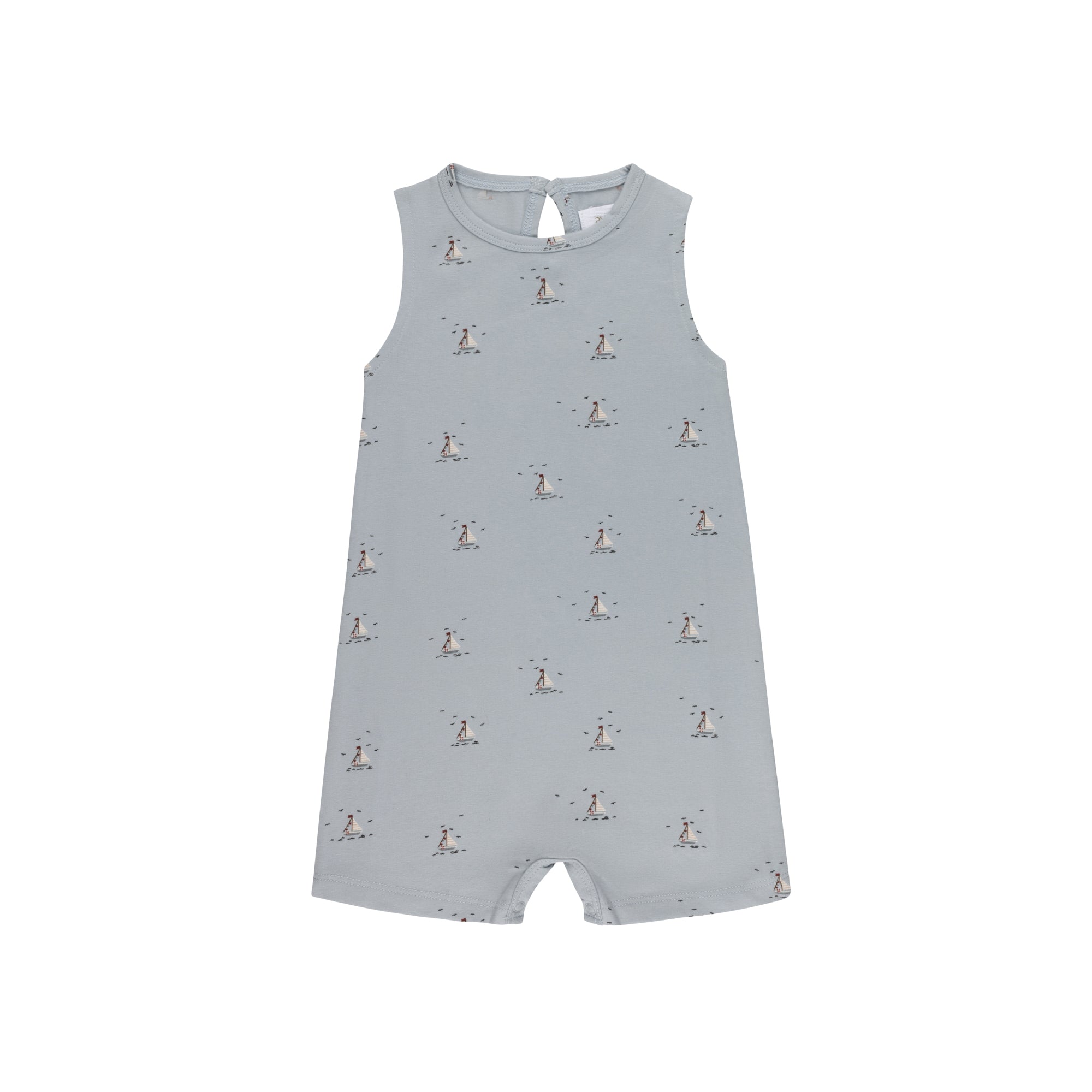 Baby Boy Footie – Ivory Blue – Nautical Print