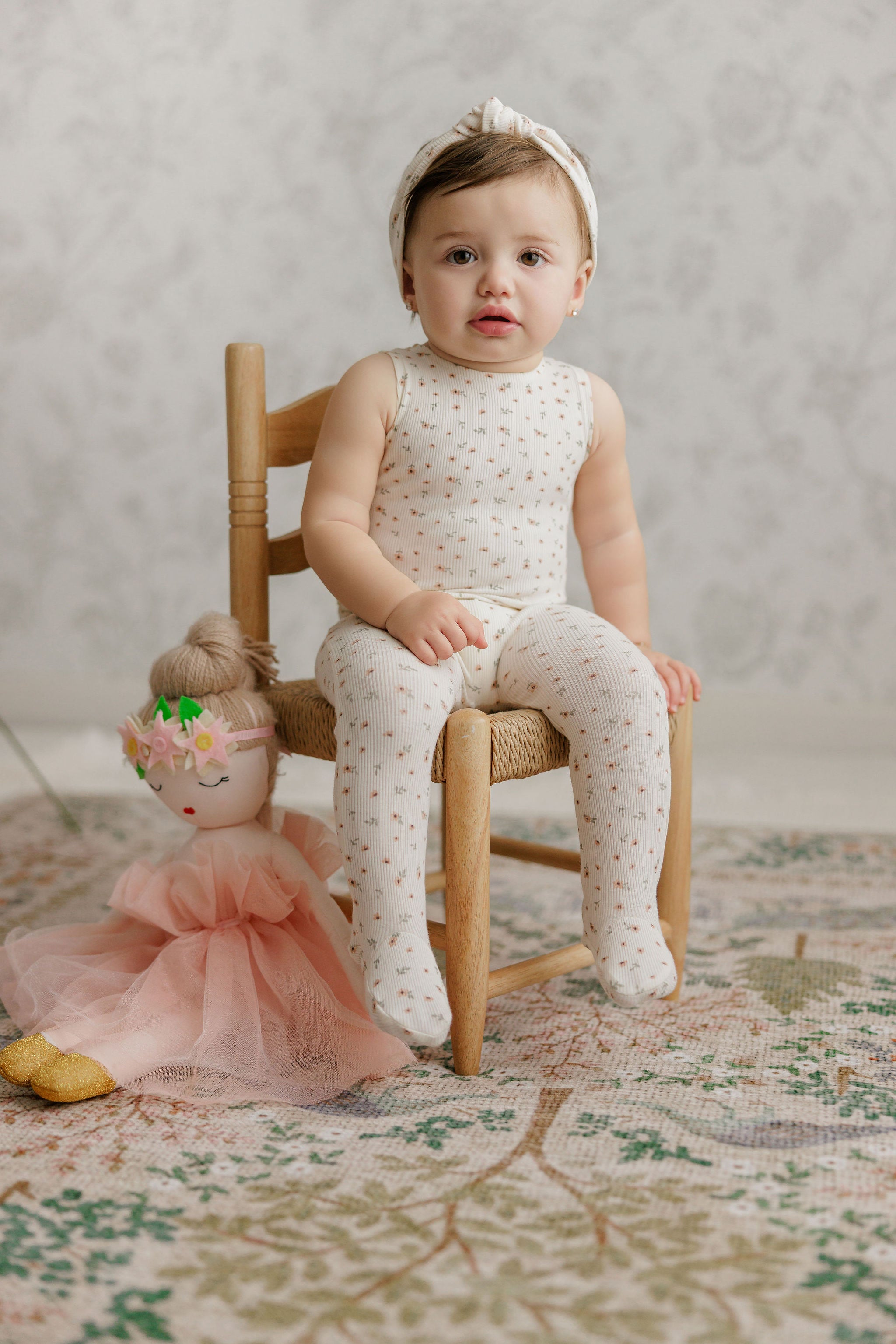 Girls Romper – Ivory Pink – Floral Rib