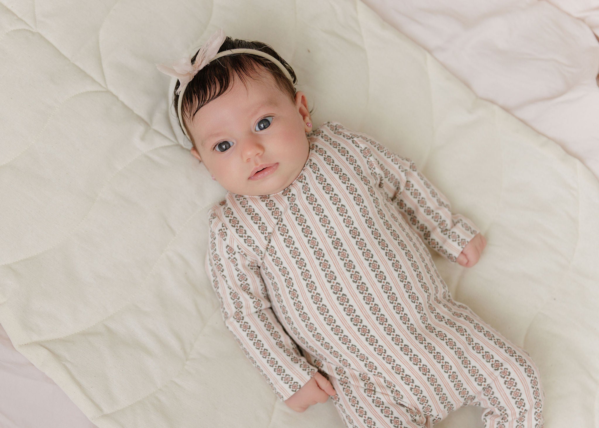 Baby Girl Footie - Ivory - Floral Grid