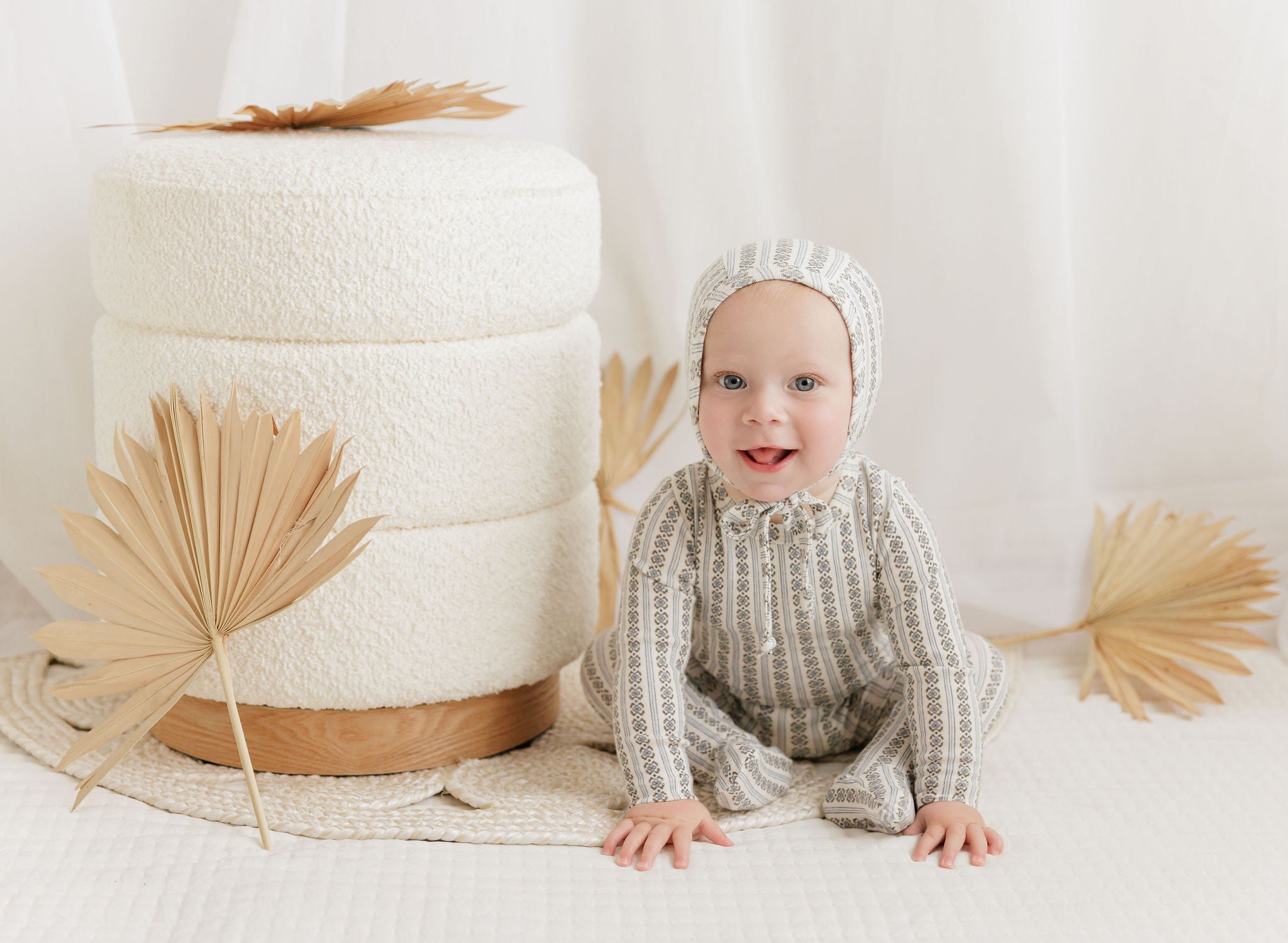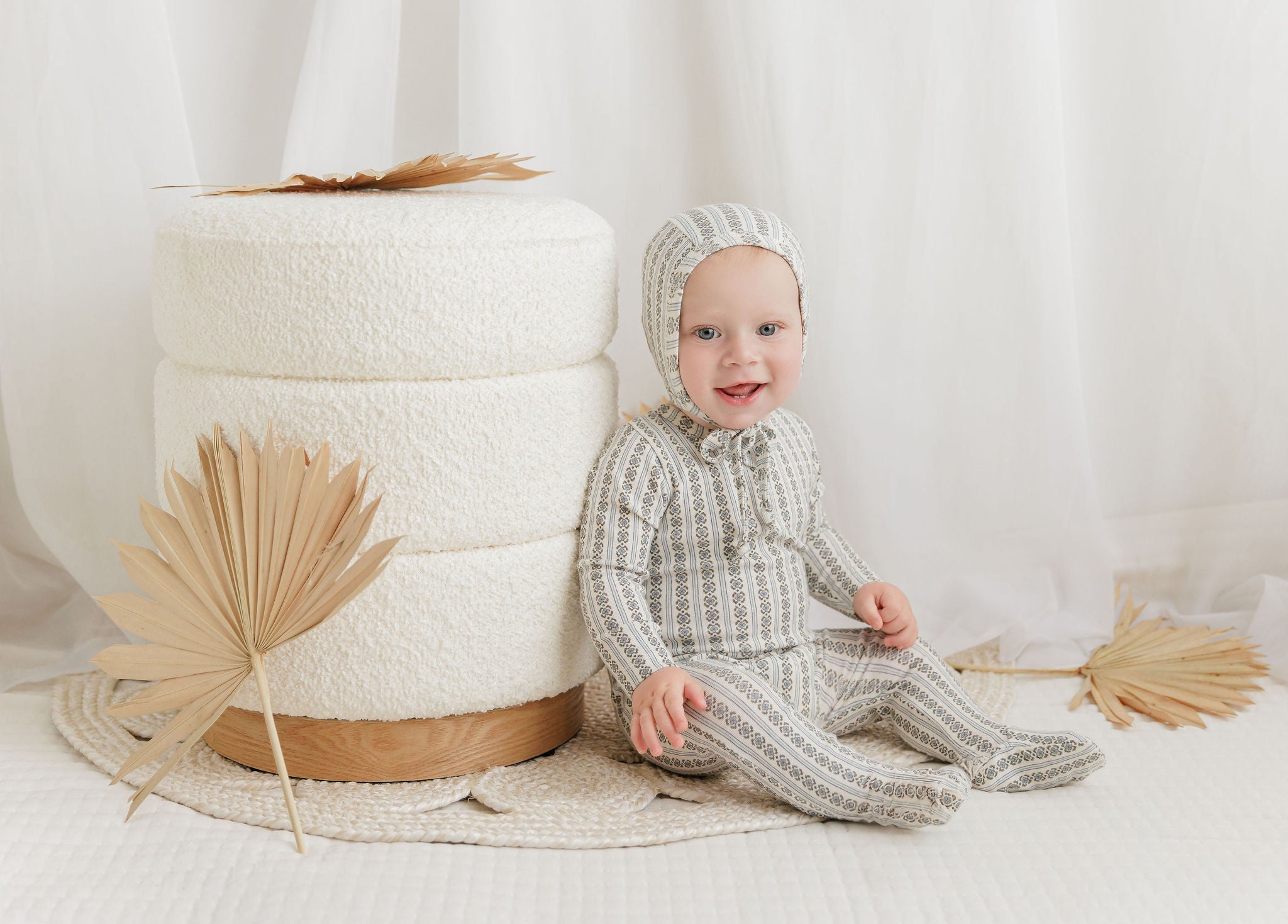 Baby Boy Footie – Ivory Blue – Floral Rib