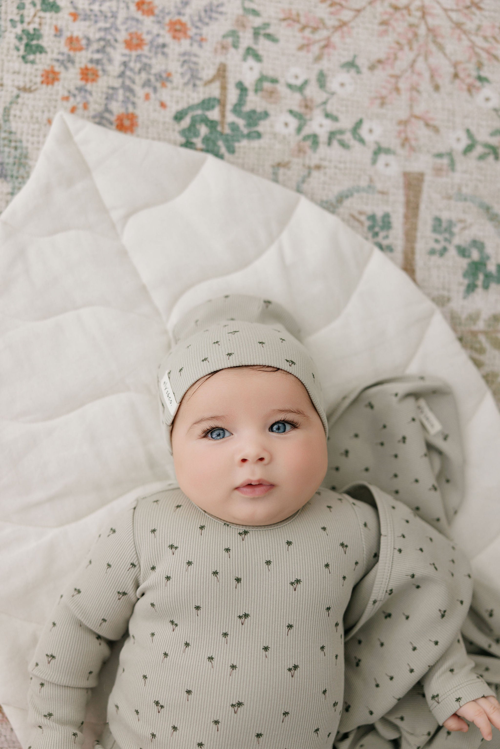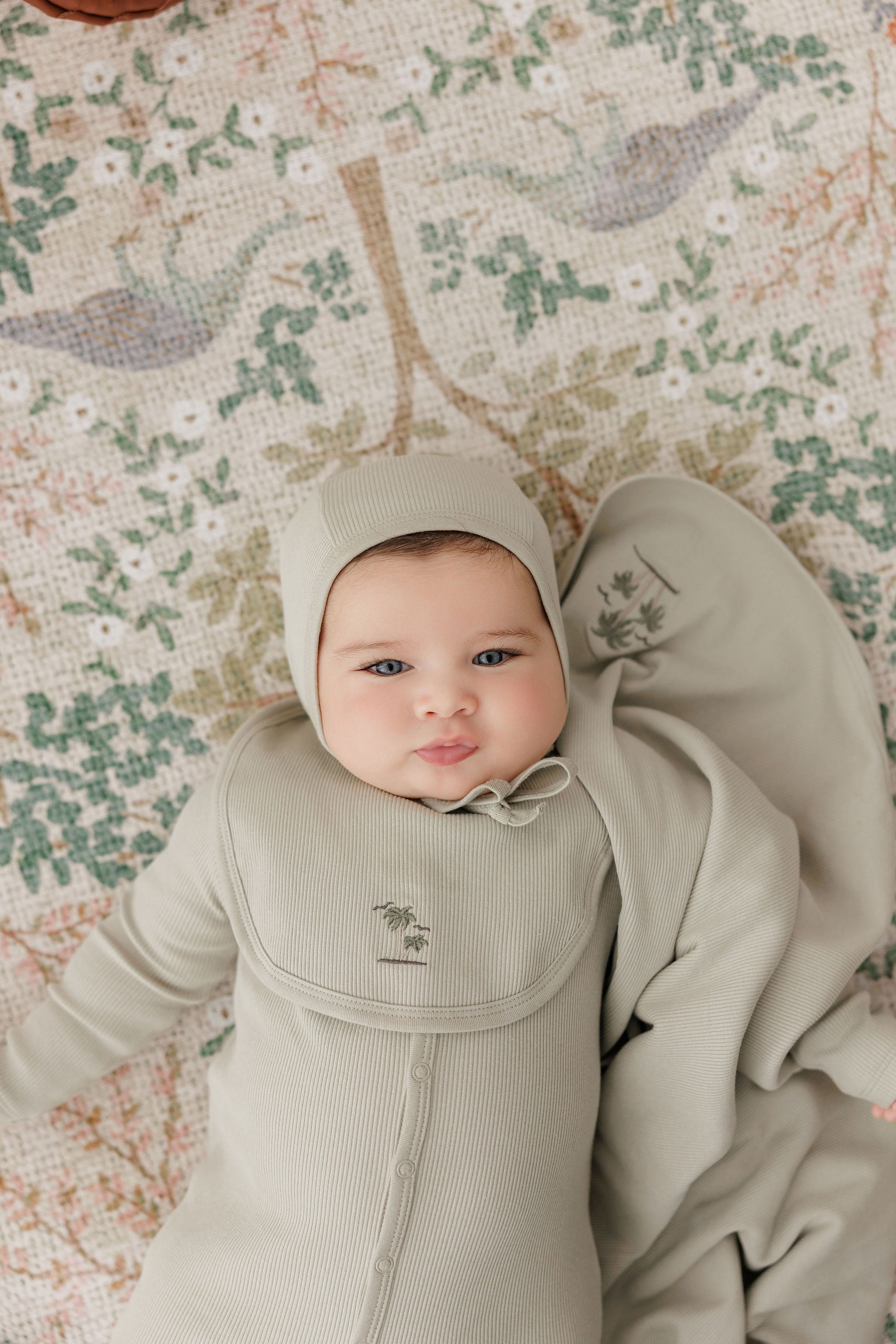 Baby Boy Footie - Sage - Embroidered Palm Trees
