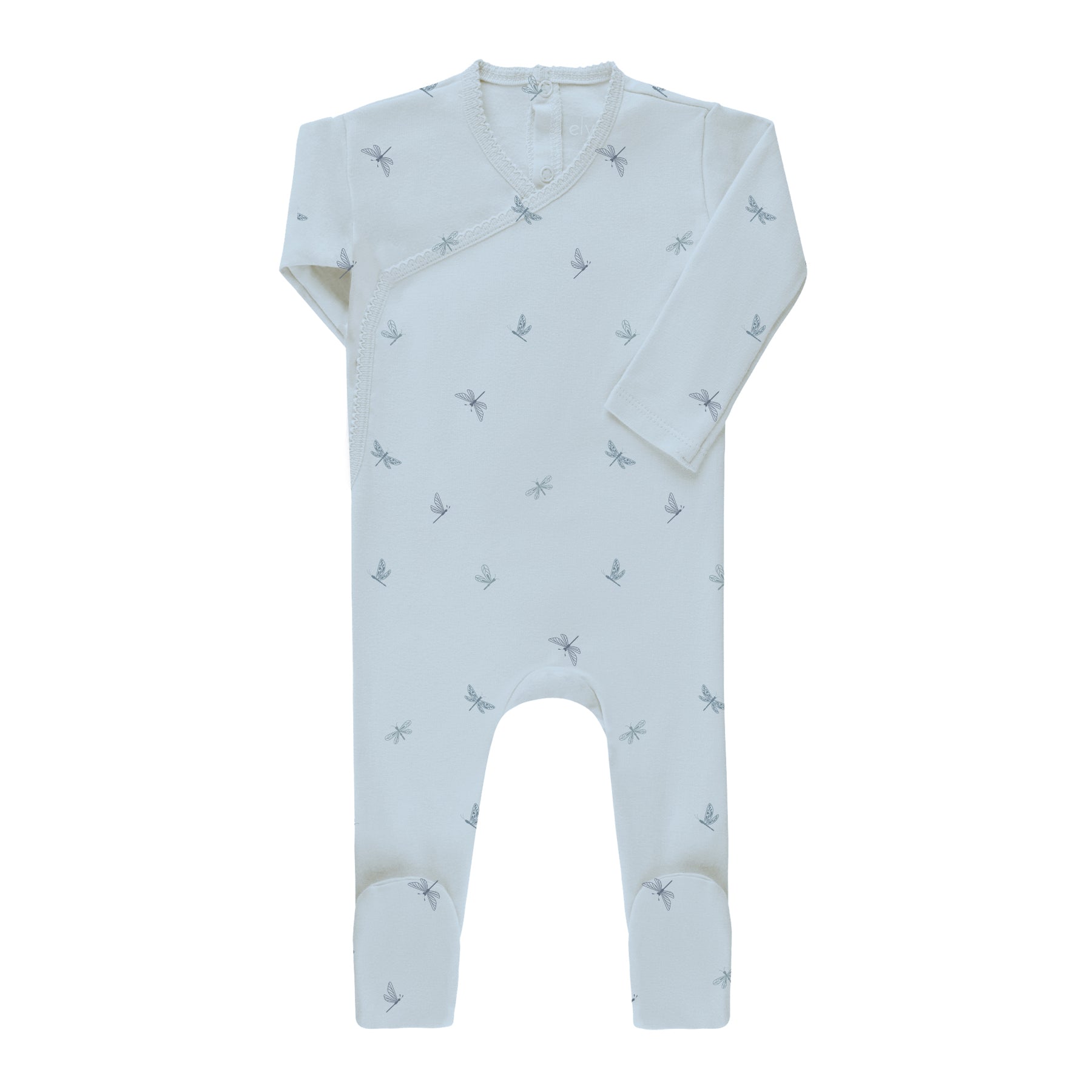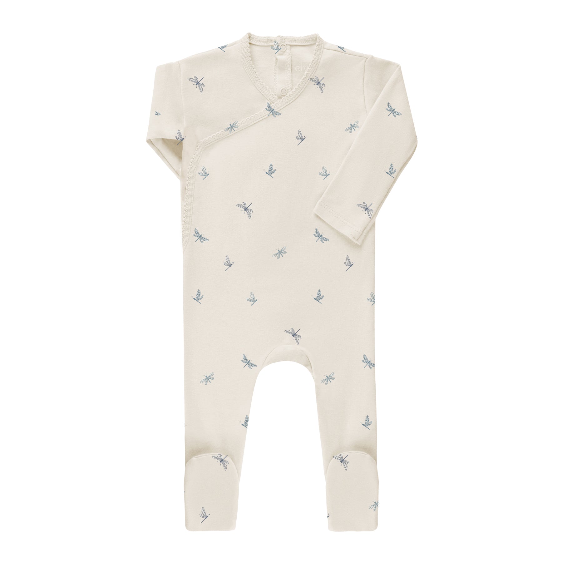 Baby Boy Footie – Ivory Blue – Dragonfly