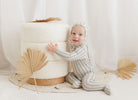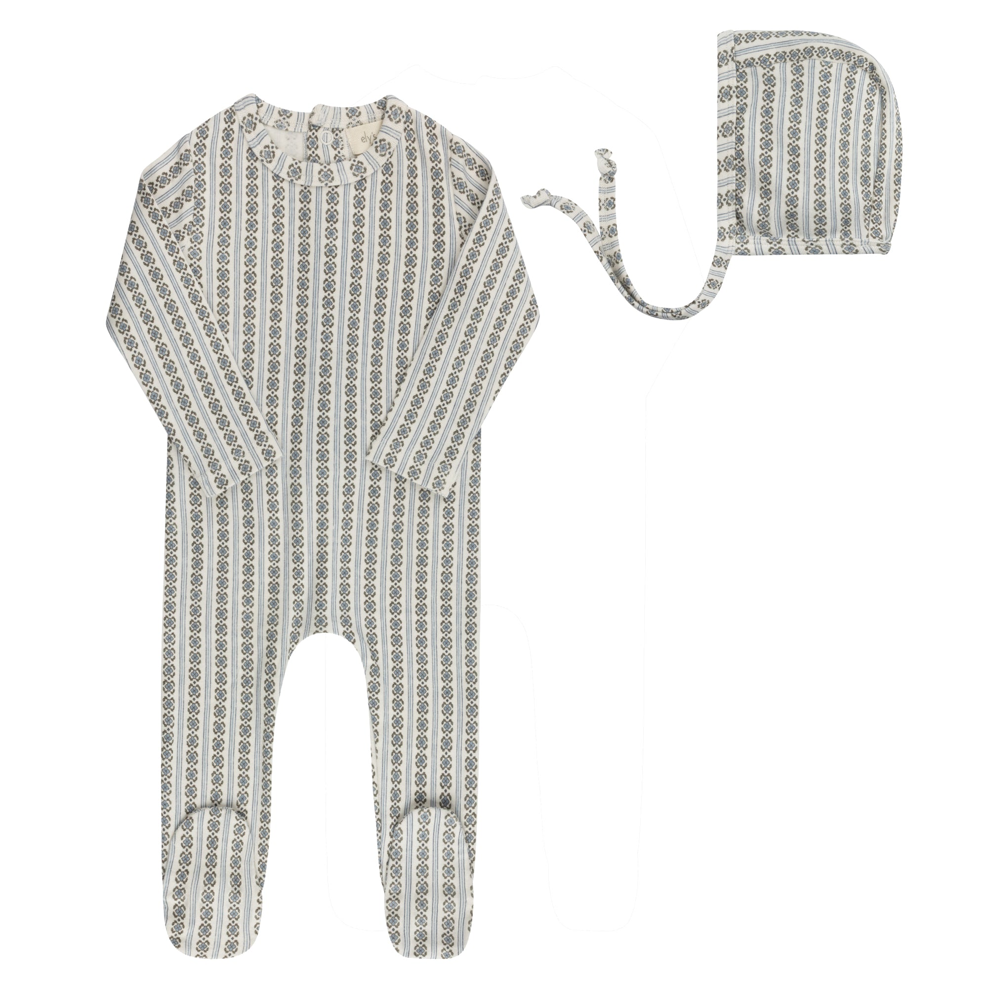 Baby Boy Footie and Bonnet – Ivory Blue – Linear Leaf
