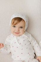 Baby Girl Footie and Bonnet – Ivory Red – Bow Pattern