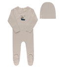 Baby Boy Footie and Beanie - Tan - Nautical Stripe