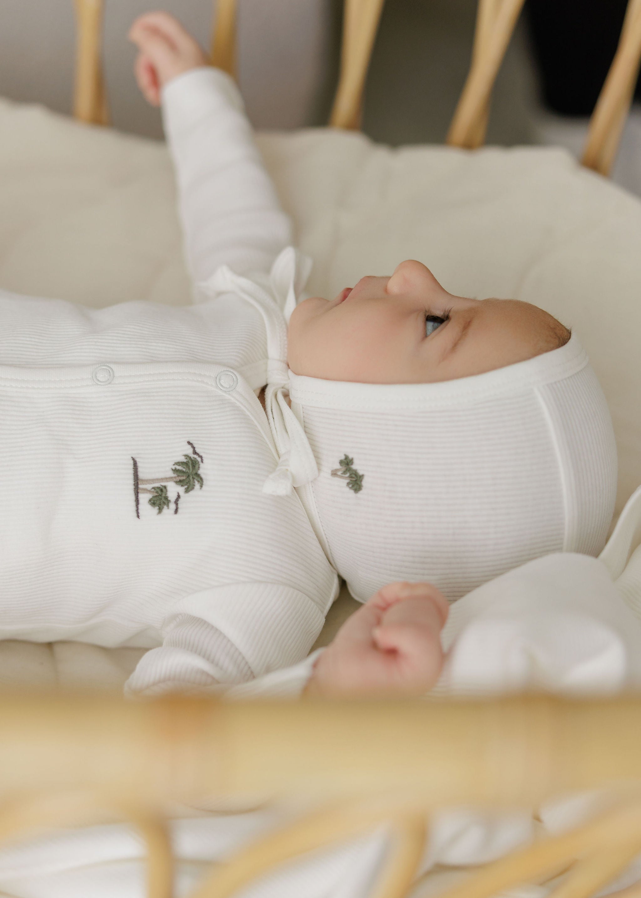 Baby Boy Footie and Bonnet - Ivory - Embroidered Palm Trees