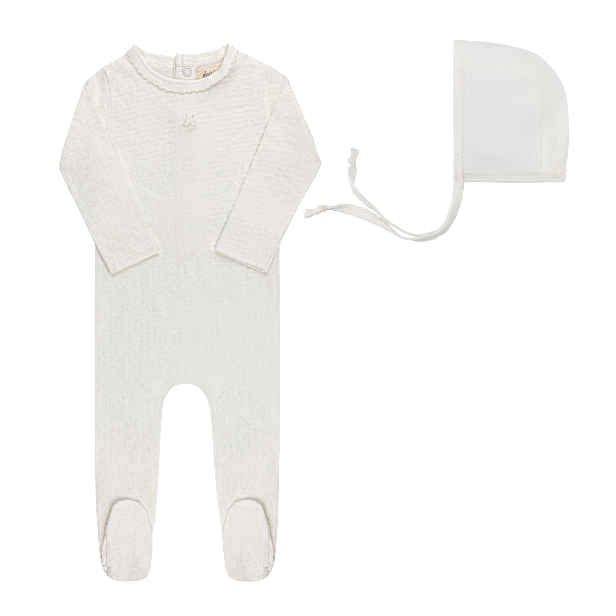 Heart and Star Button Pointelle Collection - Footie + Bonnet