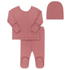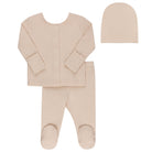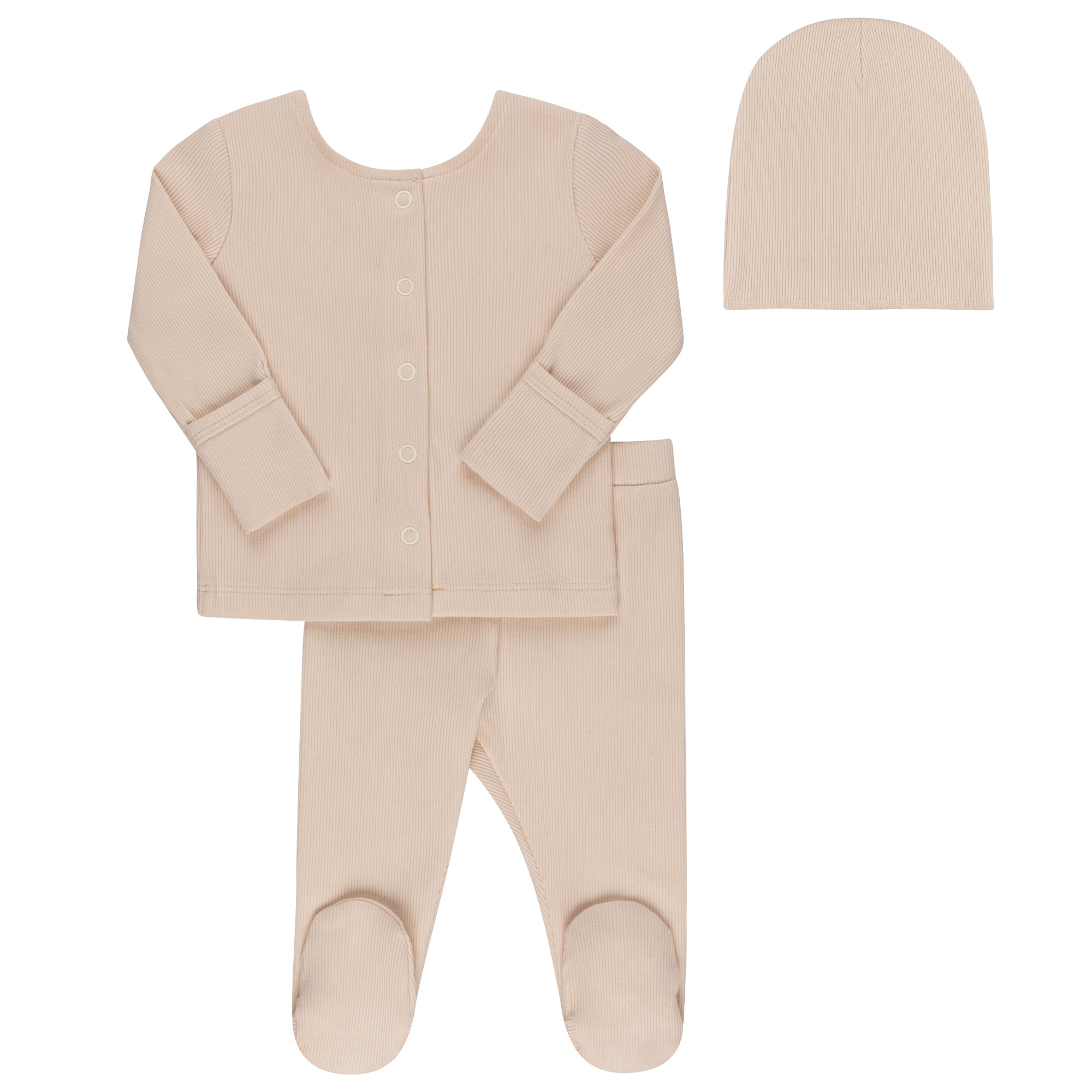 Ribbed Cardigan Set - Two Piece Footed Baby Set + Beanie