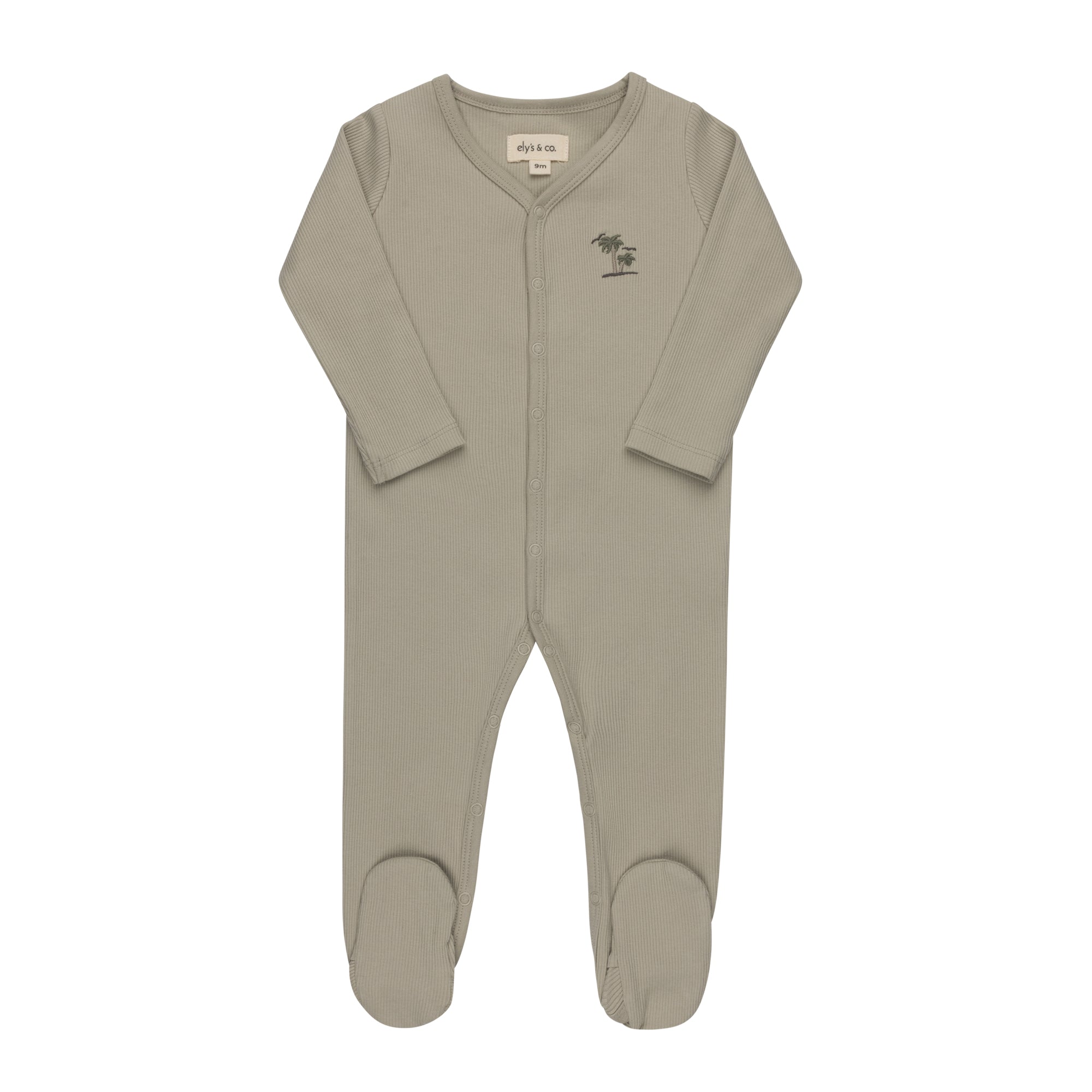 Baby Boy Footie - Sage - Embroidered Palm Trees