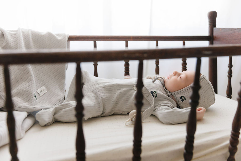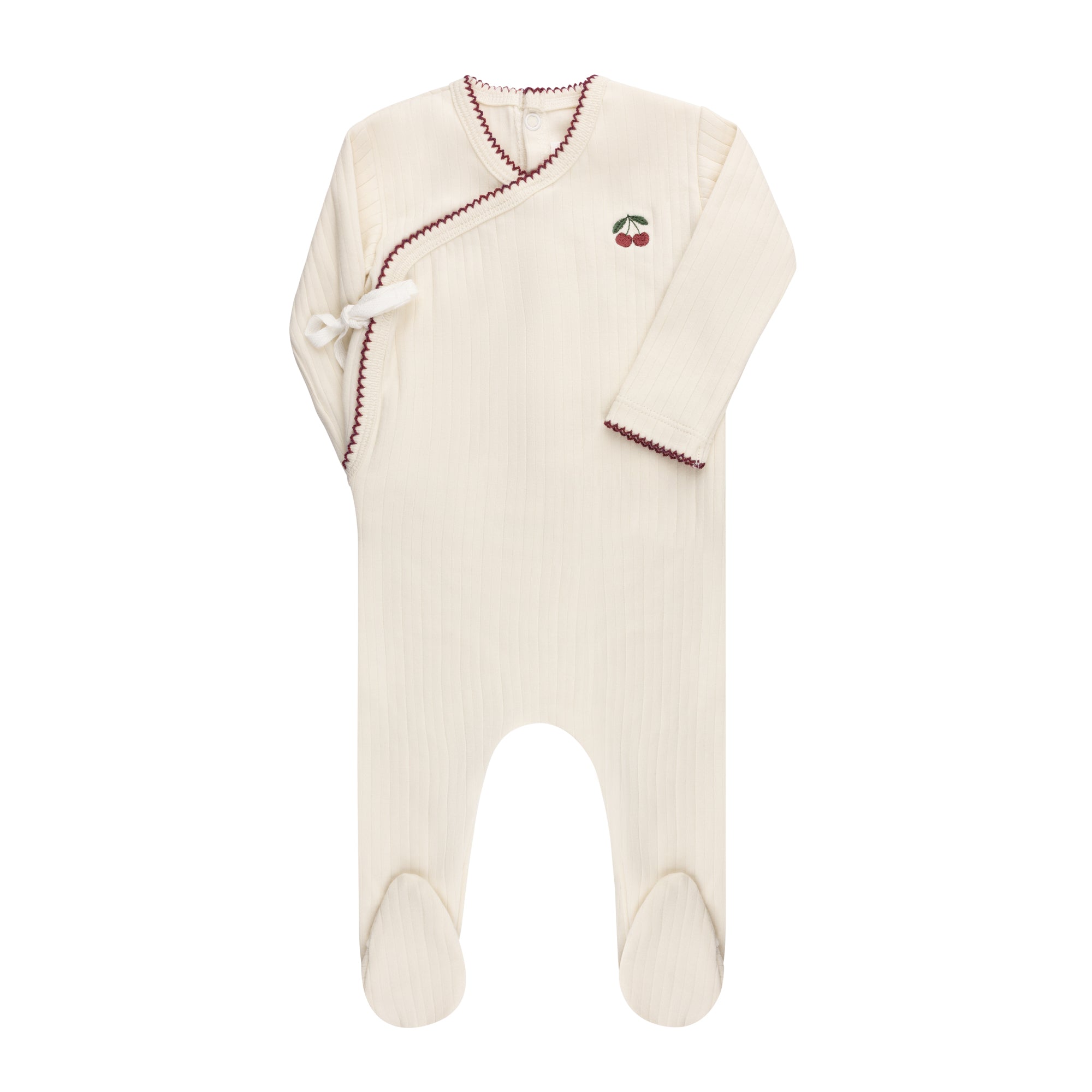 The Embroidered Cherry Collection - Footie is available in four pastel colors and features a pretty cherry applique. Made from 100% ribbed cotton, this fabric is soft and stretchy so your little one will remain comfy all day.