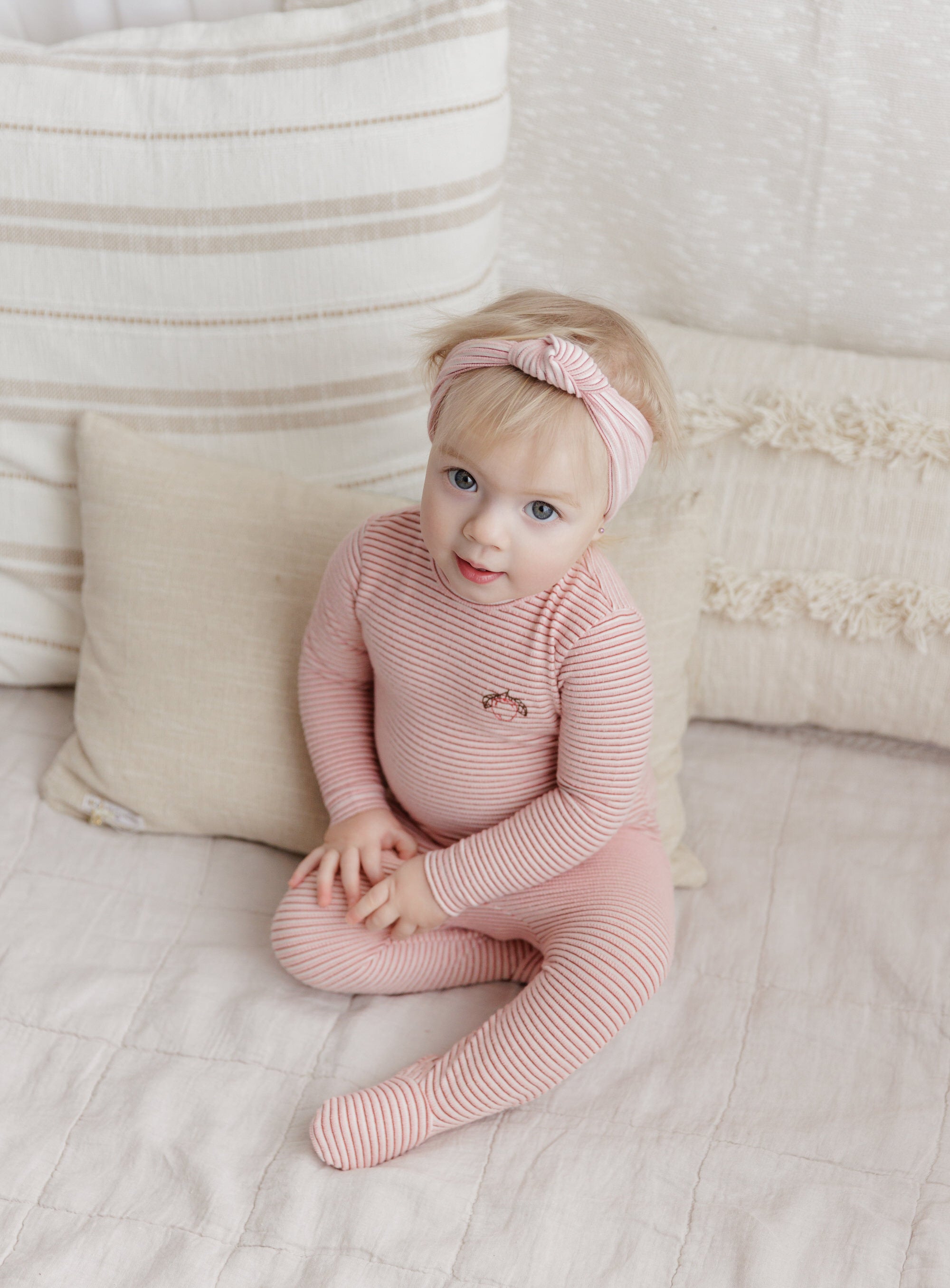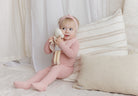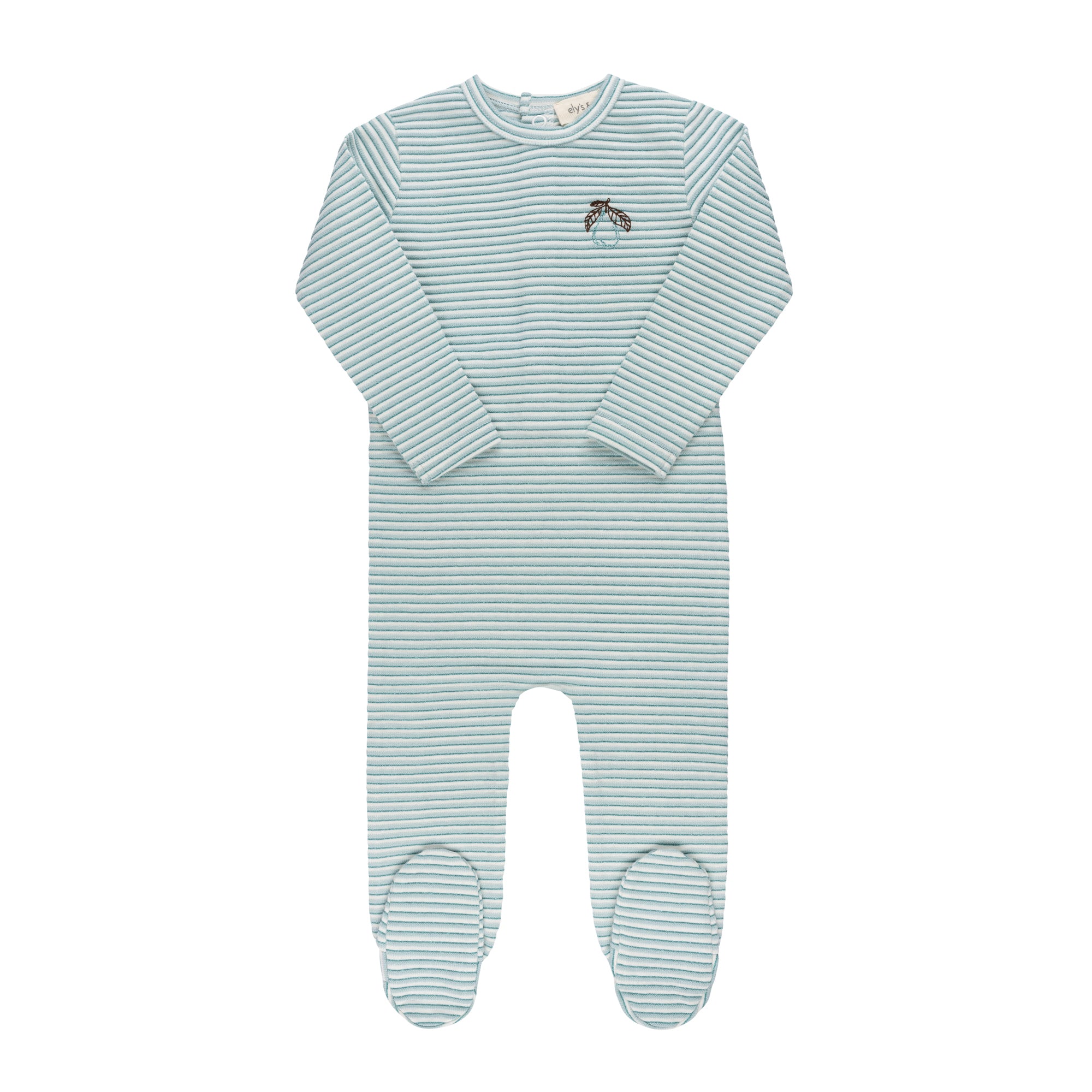 Introducing the Metallic Stripe Collection Footie—where timeless style meets everyday comfort for your little one. Crafted from soft, breathable cotton, this footie is designed to keep your baby cozy from day one through month eighteen. The eye-catching metallic stripes add a touch of sophistication to any nursery wardrobe, making it perfect for both playtime and special occasions. The convenient footie design eliminates the need for separate socks, keeping tiny feet warm and secure throughout the day and night. Easy to care for and gentle on delicate skin, this versatile piece is an essential addition to any growing baby's collection. Available in sizes from newborn to 18 months, it's the practical luxury your baby deserves.