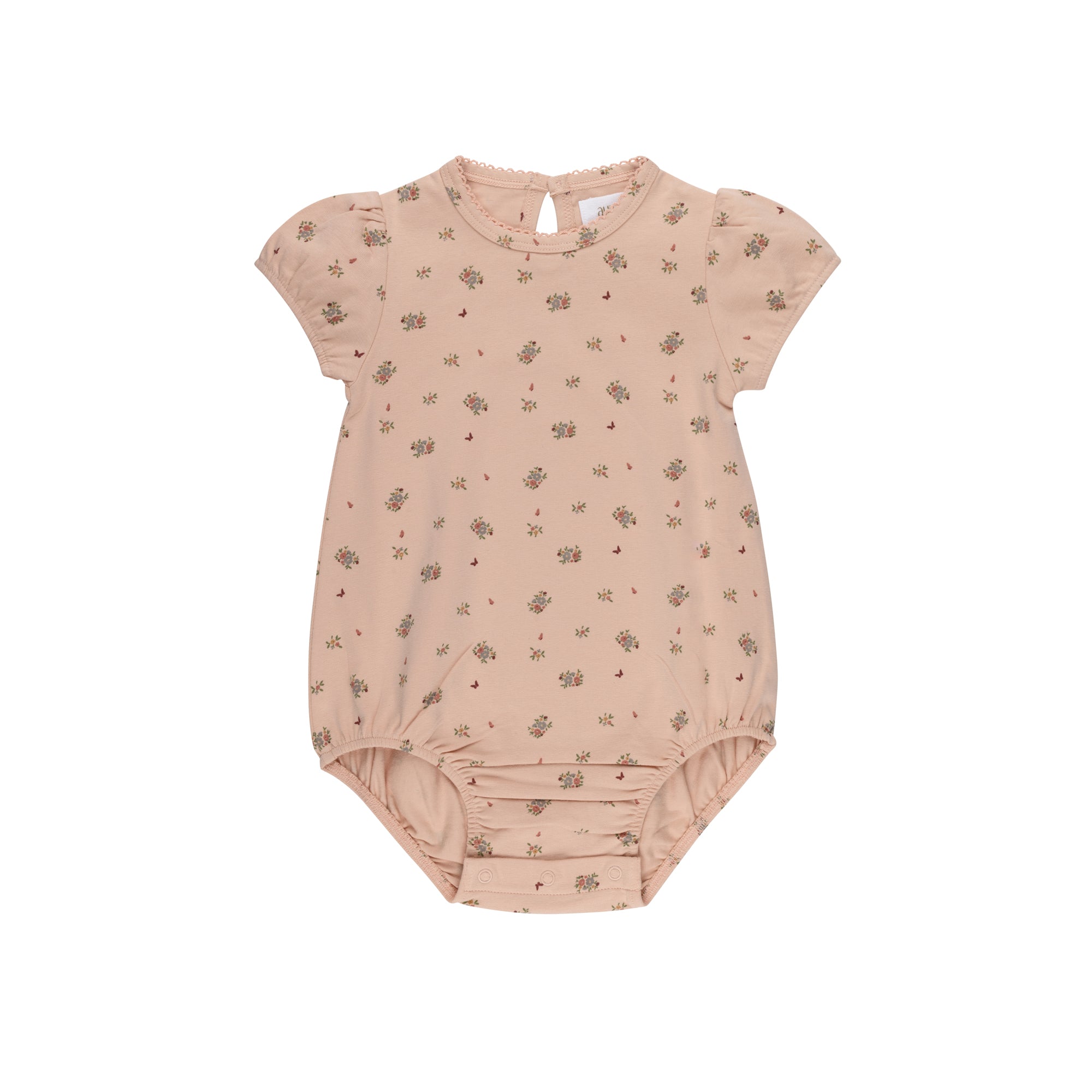This baby romper features a soft, comfortable fit with gentle stretch for easy movement. Sweet and polished, it is perfect for warm-weather days.