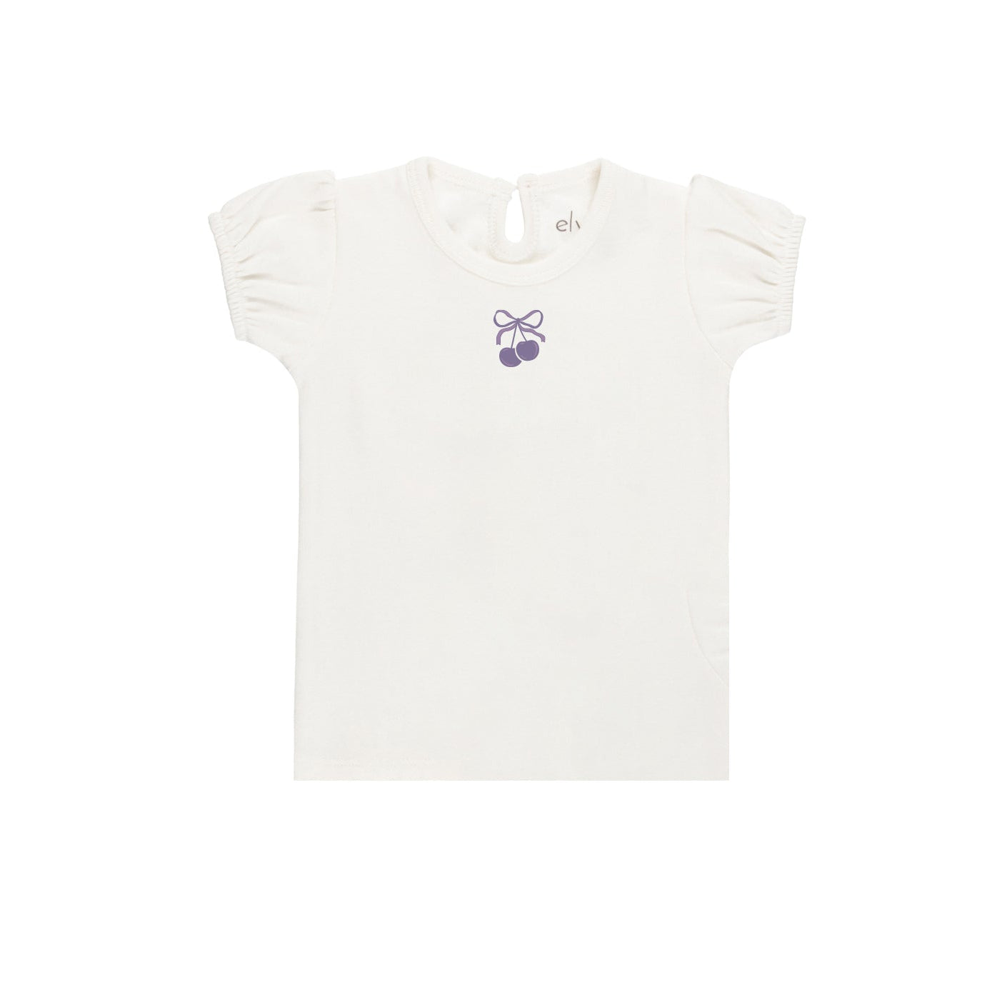This short sleeve tee features a sweet embroidered cherry bow detail for a polished, girly look. Crafted in soft stretch pointelle, it pairs beautifully with a skirt or bloomers for a complete outfit.