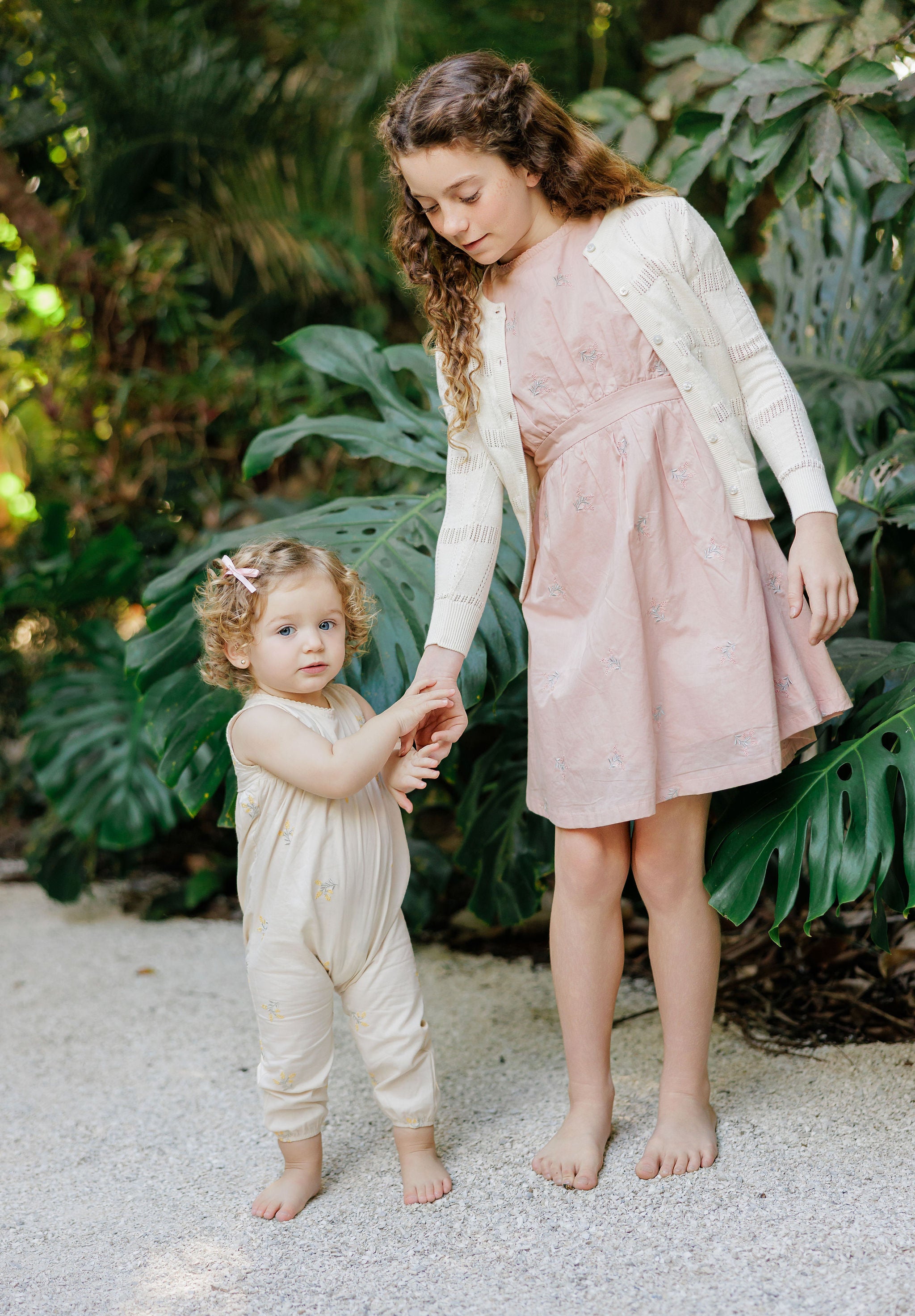The Holland Collection is a celebration of soft pastels, delicate embroidery, and breezy summer knits. From woven dresses and long rompers to coordinating wave knit sets and baby layette, every piece is designed to feel classic, light, and perfectly matched.