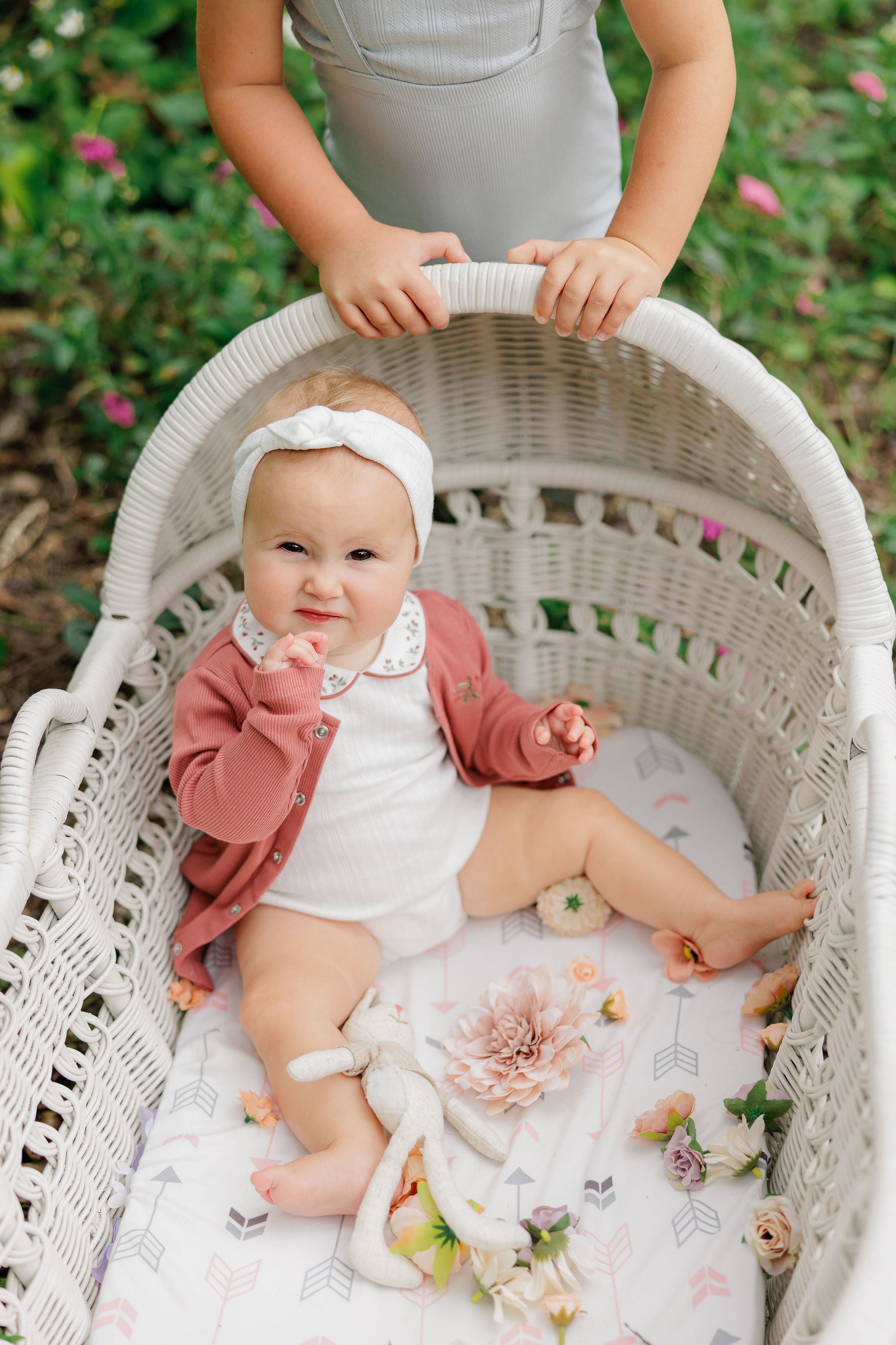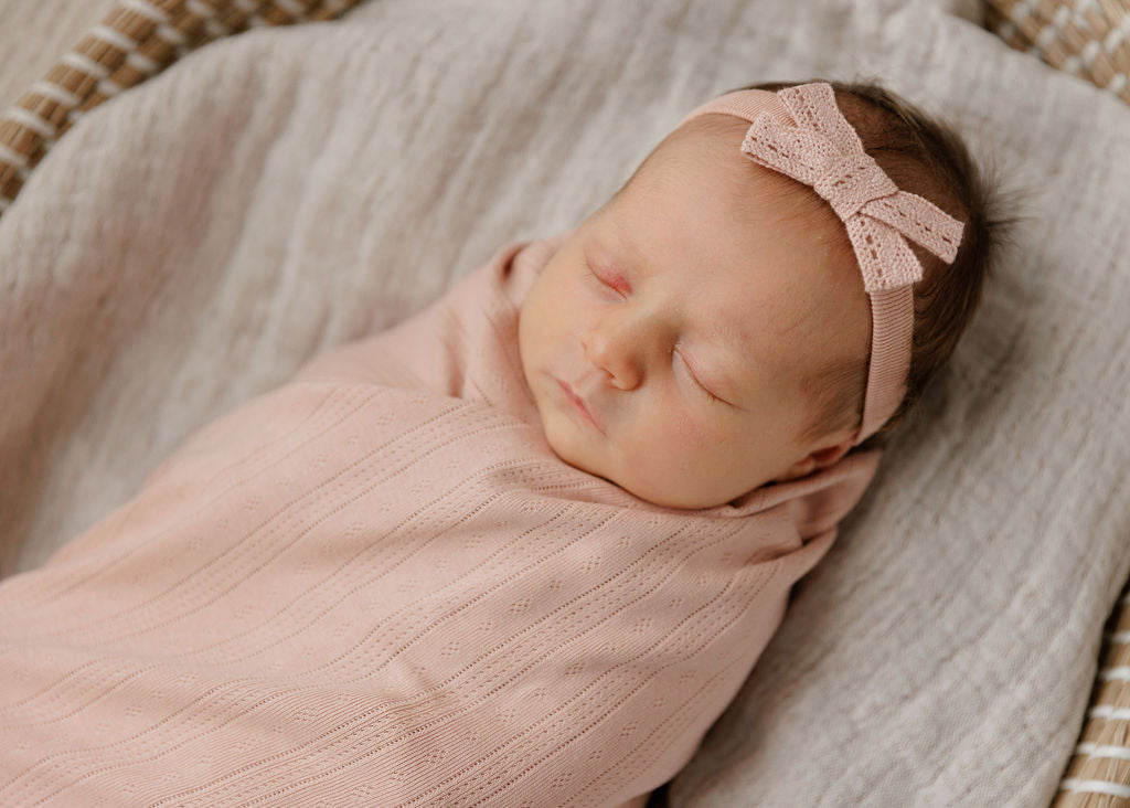 Girls Headband – Ivory Pink – Floral Pointelle