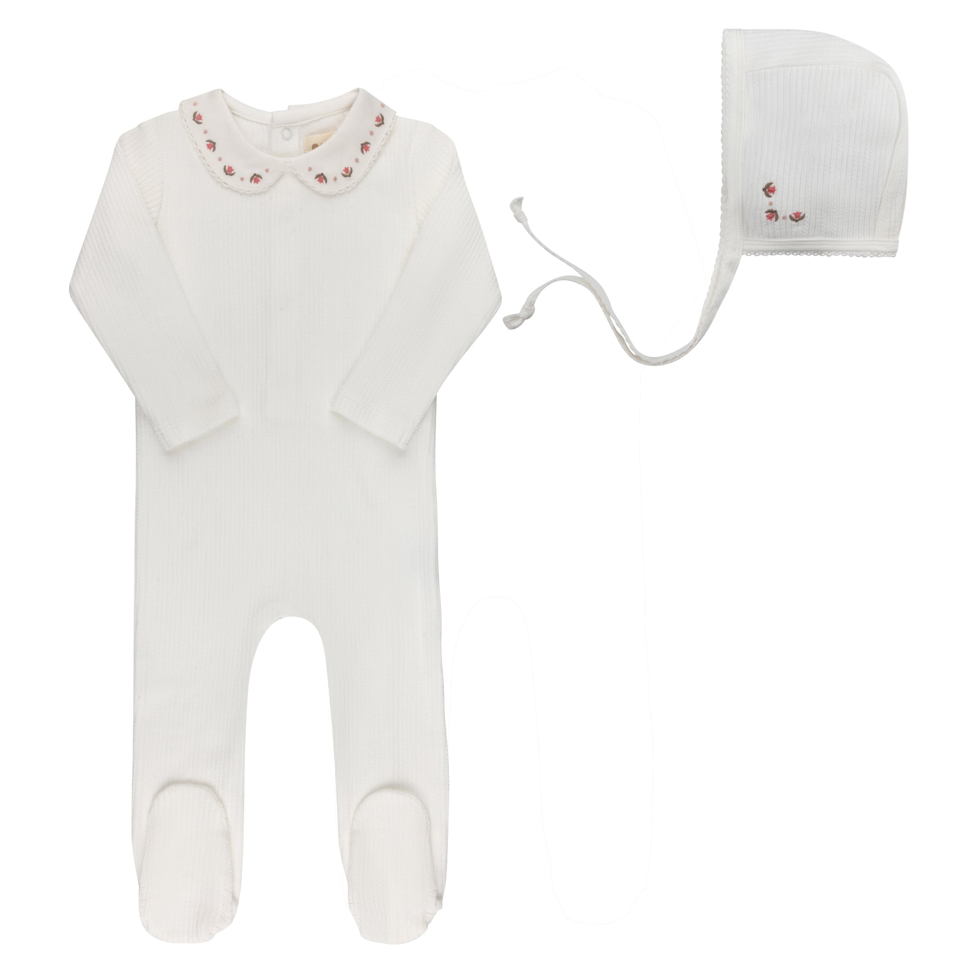 Baby Girl Footie and Bonnet – Ivory/Pink – Keepsake Collection