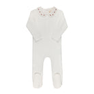 This baby piece is crafted in a soft, gently stretchy knit, featuring delicate heirloom-inspired detailing and a fresh white embroidered collar for a timeless, classic look. Designed with a softly structured silhouette made for the sweetest beginnings.