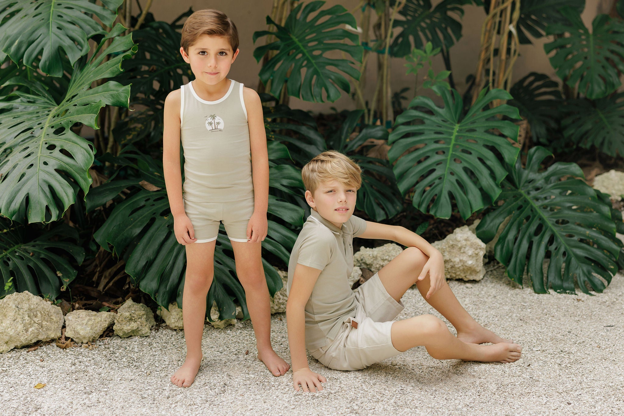 Boys Tank and Shorts - Sage - Printed Palm Trees